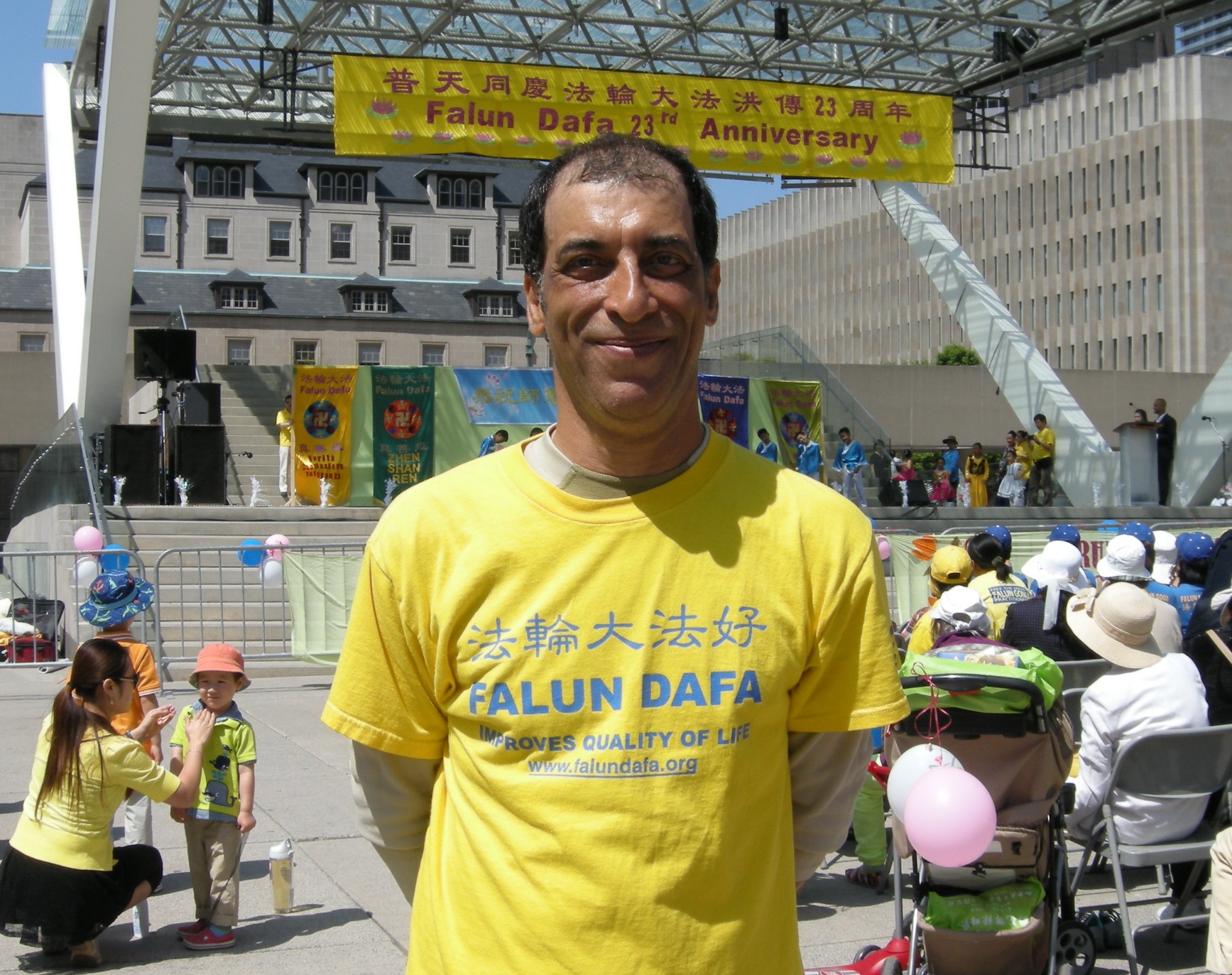 伊朗裔的Shapour Shahidi是二零一一年开始修炼的新学员。在二零一一年的多伦多大法日游行经过市中心时,他正在骑单车经过,就停下来观看。