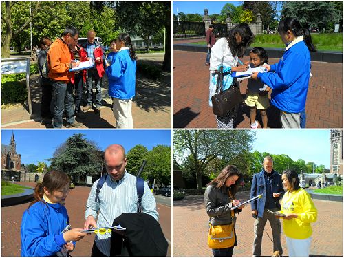 刘先生表示在大陆对法轮功不了解,直到出国才慢慢了解,并通过法轮功学员讲真相做了三退。当天,他们观看集会和文艺表演,并继续跟随游行队伍,直到游行结束才离开。