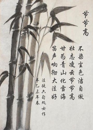 珍视修炼中点点滴滴的启悟与灵感,那是来自法中智慧的闪现;偶得神笔,诗中有画,同条共贯,故而书画“法徒六旬作”(节节高),感恩师尊救度,同庆大法洪传世界。