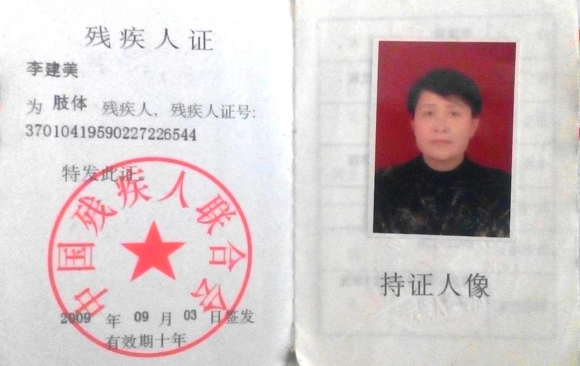 李建美女儿的残疾证明李健美的残疾证明