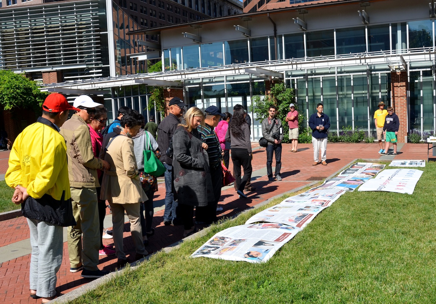 ![]() 许多游客认真阅读法轮功真相展板 |