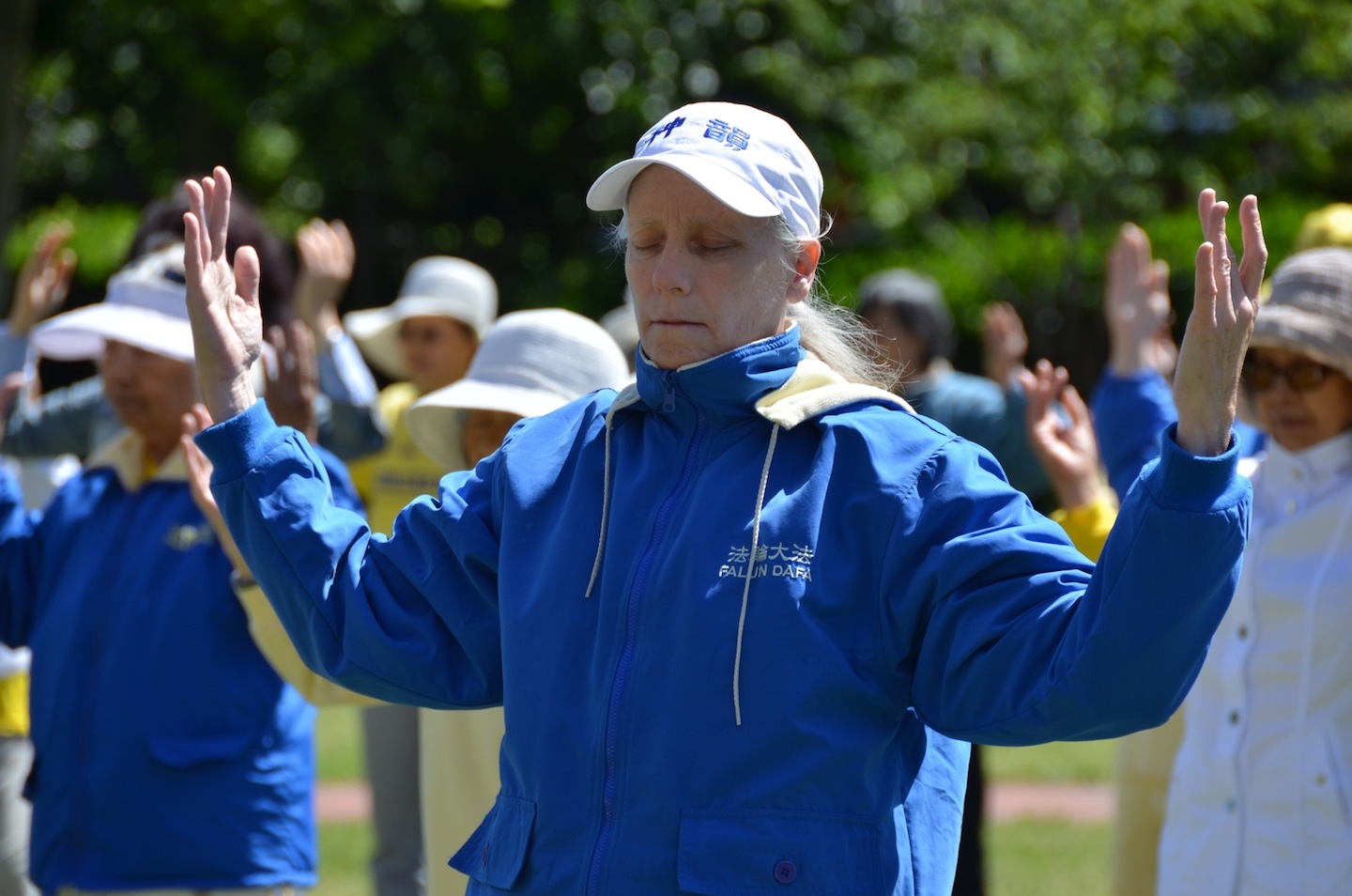 ![]() 西人法轮功学员在炼功 |