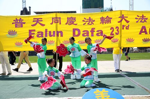 ![]() 法轮功学员在加拿大国会山前举行庆典,庆祝法轮大法弘传世界二十三周年。 |