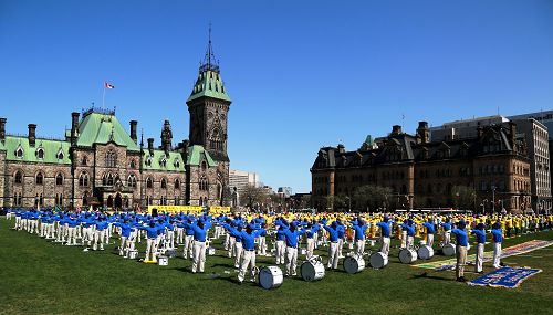 ![]() 法轮功学员在加拿大国会山前集体炼功 |