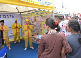 六月六日至八日,泰国法轮功学员来到呵叻府的府城Korat市洪法教功。不少人前来了解和学炼法轮功,路人纷纷拍照、索要资料。