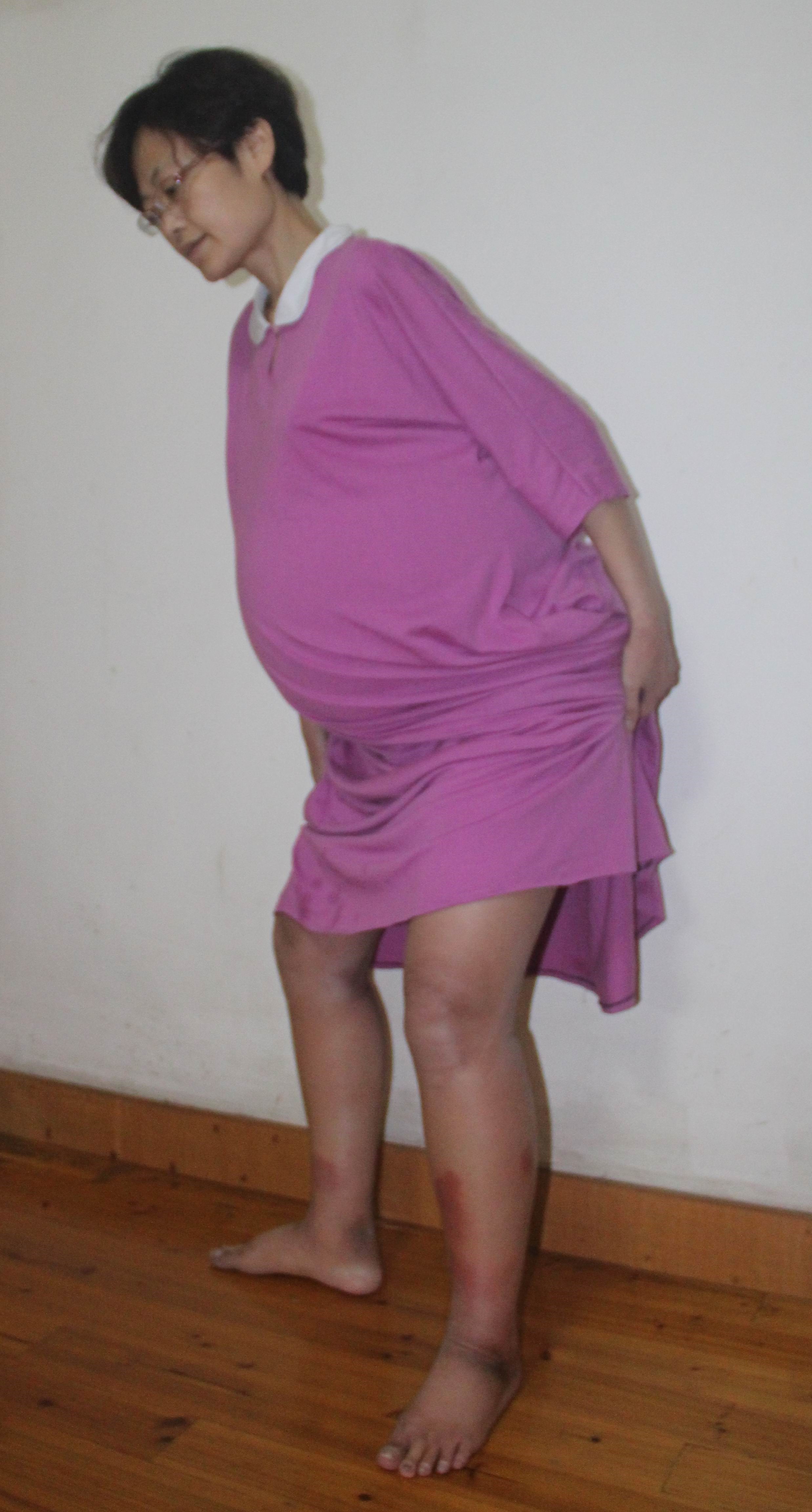 ![]() 吴井军身体被迫害导致腹部肿胀、上身弯曲、腿上皮肤开裂流水 |