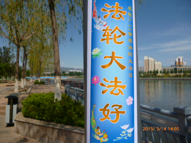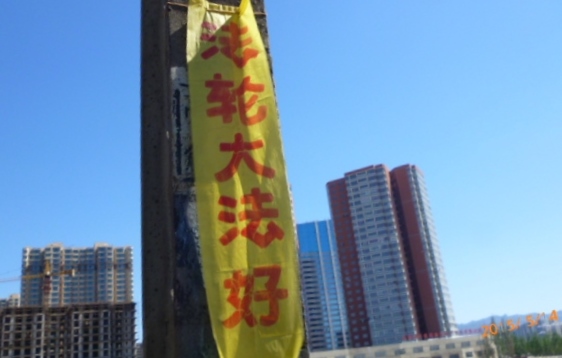 塞外山城张家口到处可见到“法轮大法好“等条幅