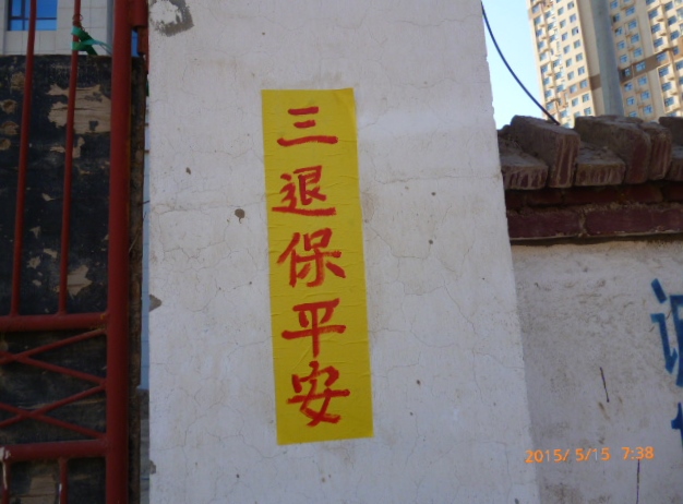 【明慧网二零一五年六月十三日】二零一五年五月中,河北省张家口地区城镇街道多处可见“法轮大法好”、“真善忍好”、“全球公审江泽民”、“三退保平安”等真相标语、黏贴。