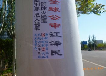 黑龙江、长春街头出现“全球公审江泽民”标语