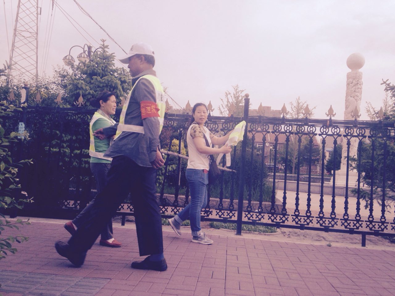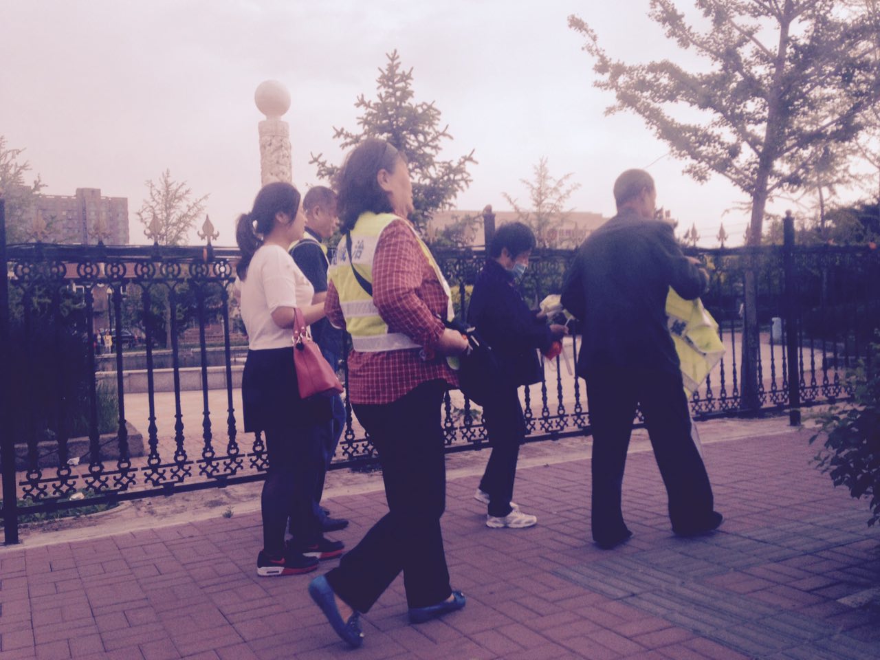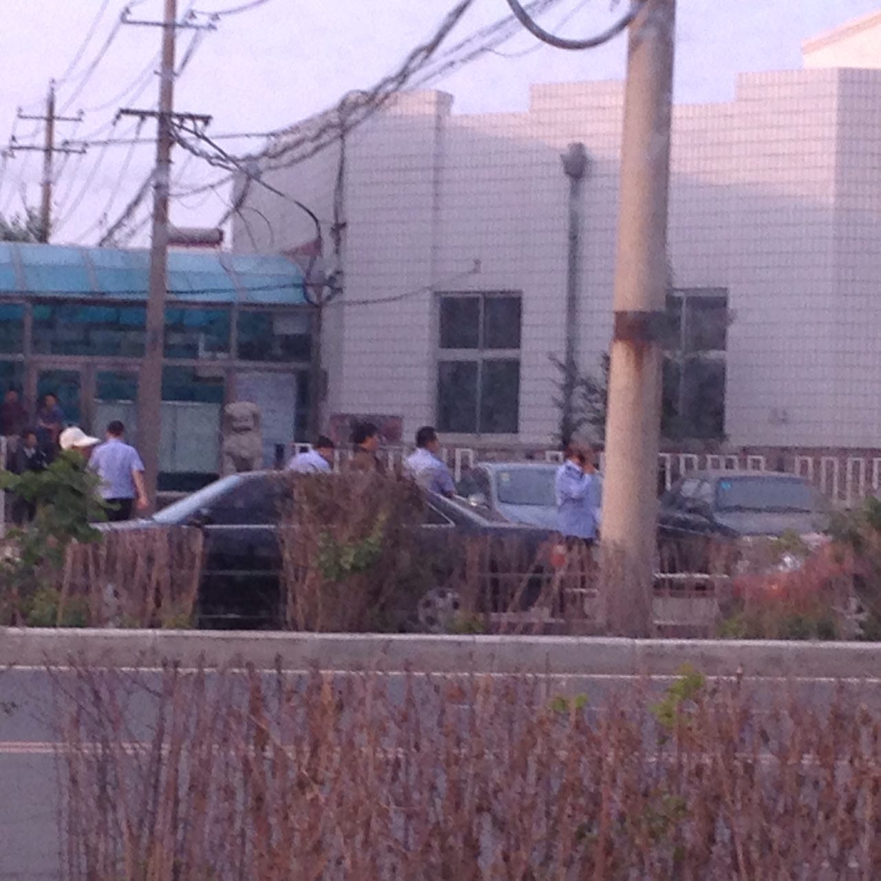 王淑艳和刘香阁两家家属起大早赶到法院,发现五点之前,法院门前道路就已全封闭了,两辆警车横在法院门口,众多像私家车的便衣车占据着路旁,门口除了着警服的警察外,到处都是便衣,他们上身着各色西服,下穿警裤,拿着小铲子,在铲道路两旁贴在电线杆和建筑物上揭露宽城区法院非法开庭的真相传单。