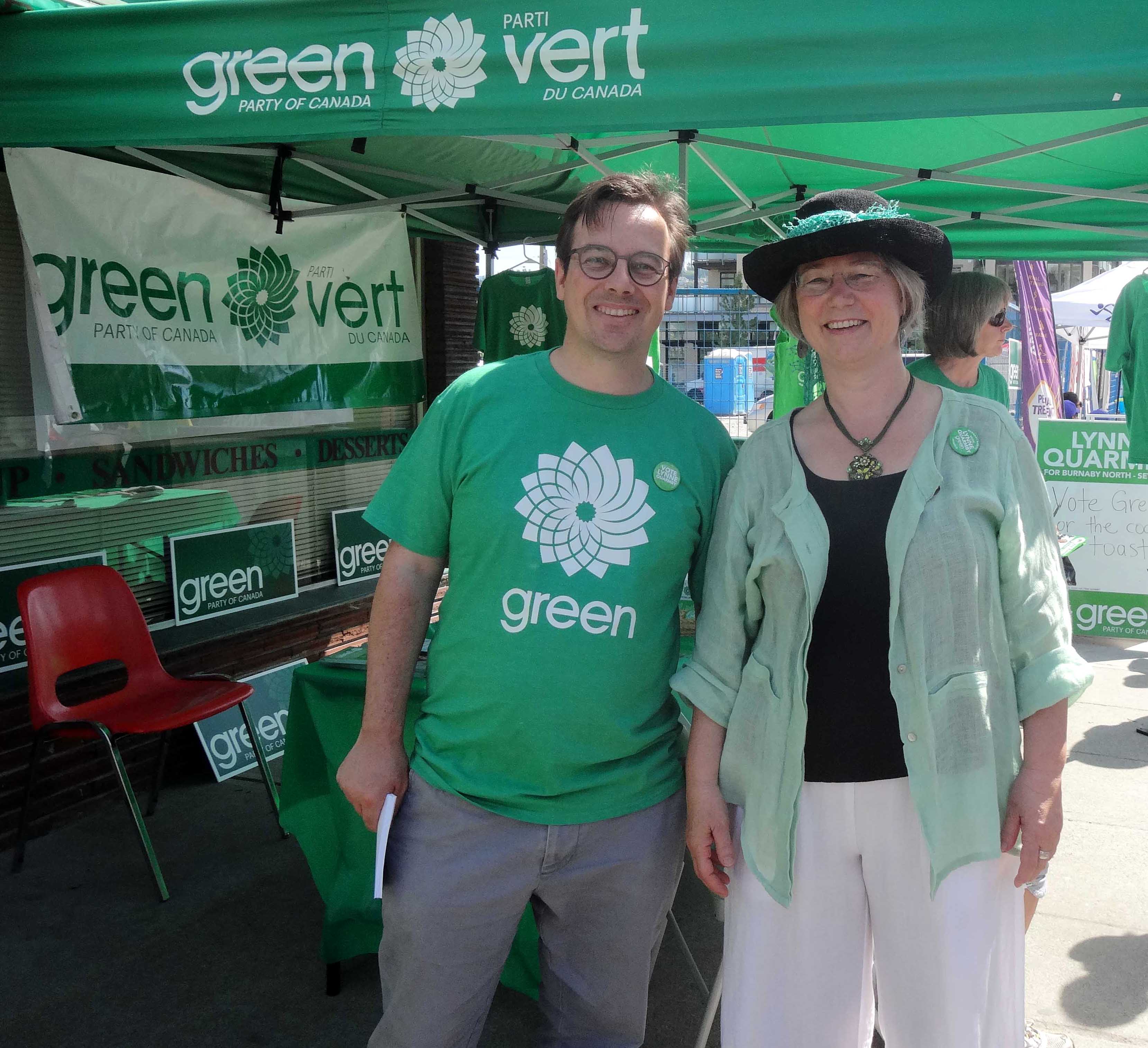图6:Lynne Quarmby 女士是绿党北本拿比国会议员候选人(右),Tyler Russell 先生是现代亚洲艺术温哥华国际中心的执行总监(左)。