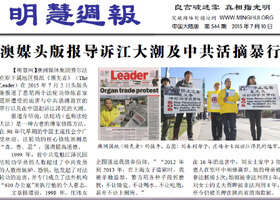 澳媒头版报导诉江大潮及中共活摘暴行