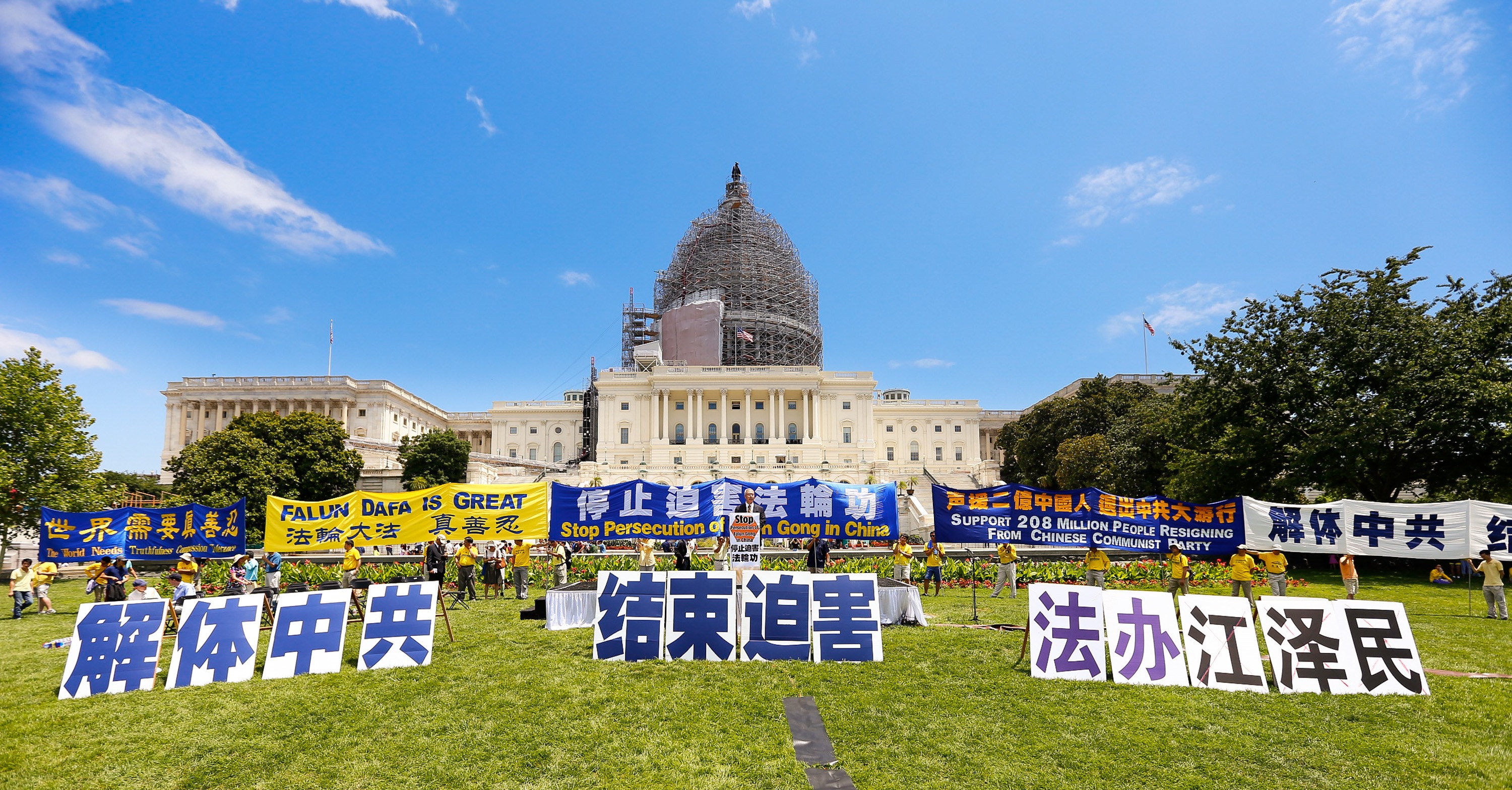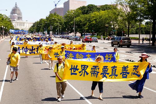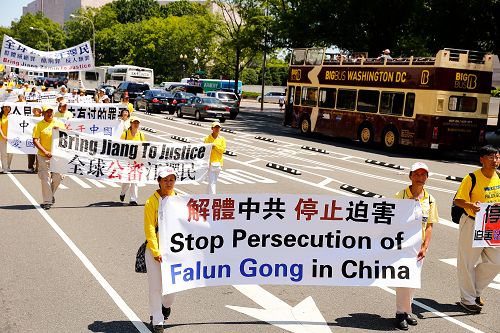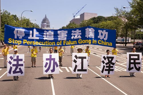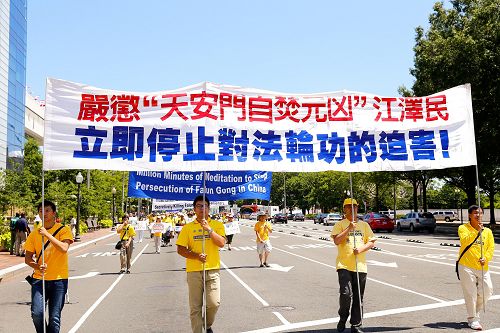 ![]() 图1-5:“七·二零”法轮功学员反迫害十六周年前夕,美国各地的部分法轮功学员及支持者在美国首都华盛顿国会山西草坪集会,呼吁制止迫害。 |