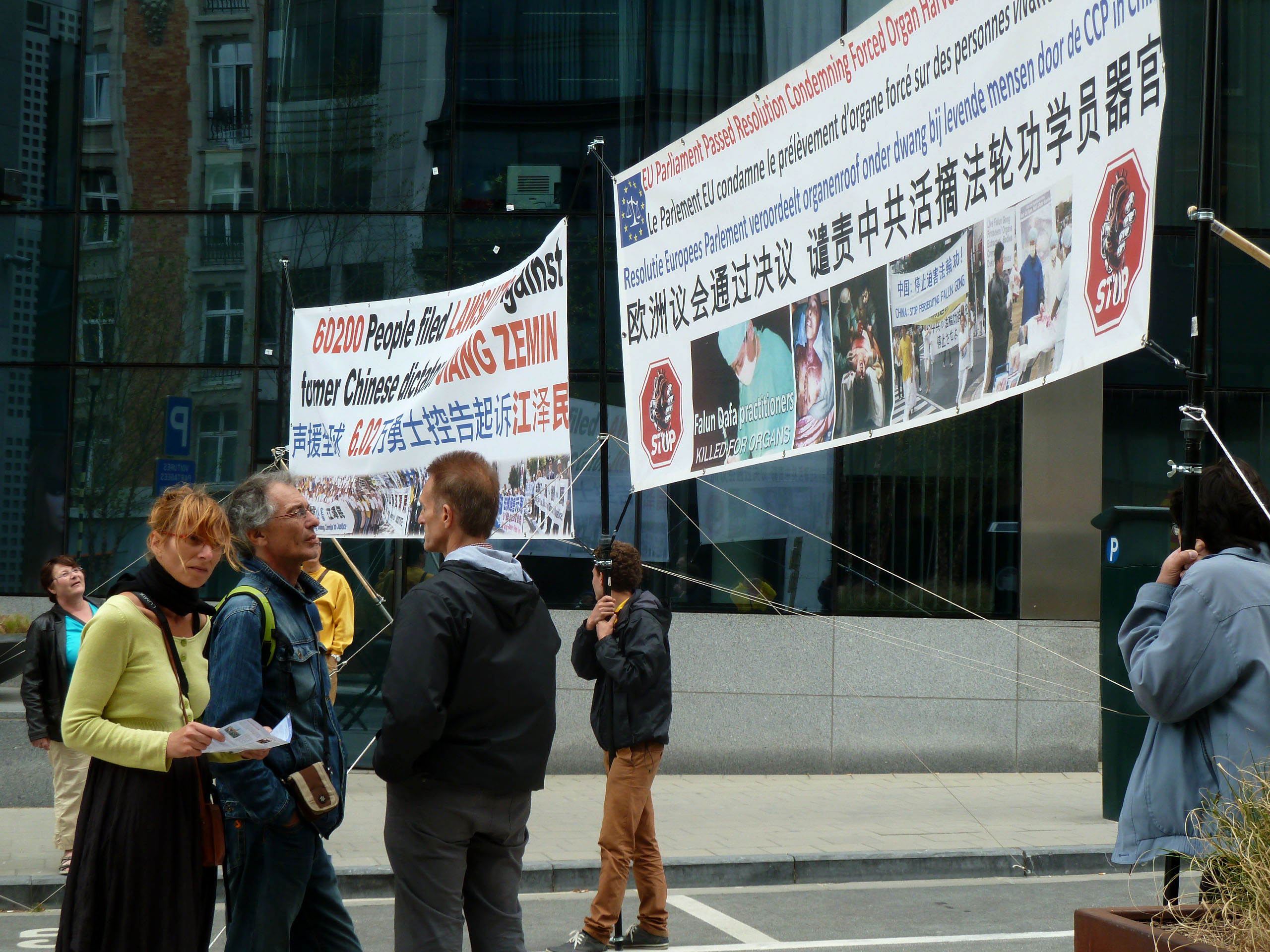 ![]() 图1:二零一五年七月十二日,欧盟在布鲁塞尔欧盟总部召开二十八国高峰会议。比利时和德国部分法轮功学员也来到这里传播法轮功的真相。 |