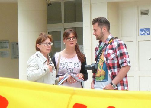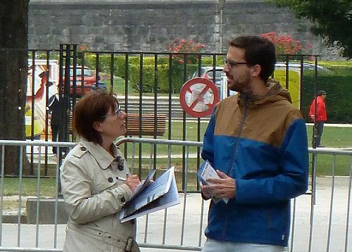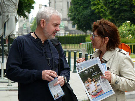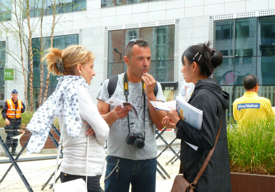 年轻的Anne接过学员递上的真相传单,并倾听学员给她讲述的法轮大法的介绍,她觉得“真善忍”很好,她无法理解这么好的功法,对群众和社会都有益,为何中共如此残酷迫害。当学员跟她讲述共产党的本质的时候,因为Anne的父母是从乌克兰移居比利时的,乌克兰原来也是共产国家,所以Anne很快明白了。她听到中共强摘法轮功学员器官,以及尸体展的真相后,完全被震惊了。她难过的说,回去一定要告诉她身边的人这个真相。她并对学员说,你们在工作日出来告诉人们真相,非常好。