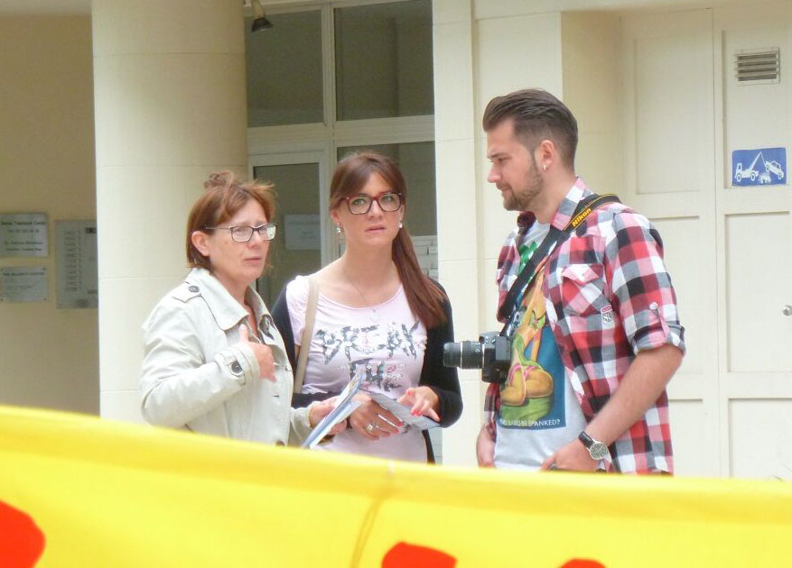 两位年轻的女学生,Meredith来自美国明尼苏达,Diana来自墨西哥,她们研究国际关系,她们来布鲁塞尔为欧盟一个残疾人项目工作。当天上午她们在布鲁塞尔的炼功点学习了功法后,得知下午在二十八国峰会前,法轮功学员举办反迫害活动,她们特意过来了解迫害真相。她们表示,这样的迫害不应该发生。