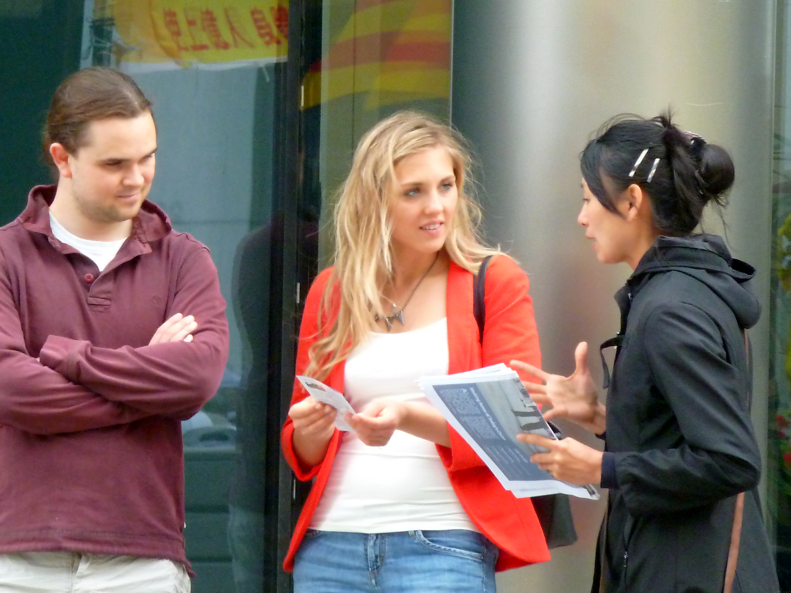 一位中文名字“飞马”(Philippe Flemal)的年轻人,刚好从温哥华度假回来,到街上来散步,遇到这个活动。当学员把材料递给他的时候,他表示知道法轮功,知道迫害,知道大纪元等等。他曾去过几次台湾,看到过台湾法轮功学员搞的很大的活动;他还曾经在厦门居住过一年,并在厦门大学学习过中文,并给自己起了中文名字飞马。因此他了解在中国发生的迫害,他自己也一直在关注着在中国发生的这场迫害,他认为这样的迫害只会发生在中国这样的地方。