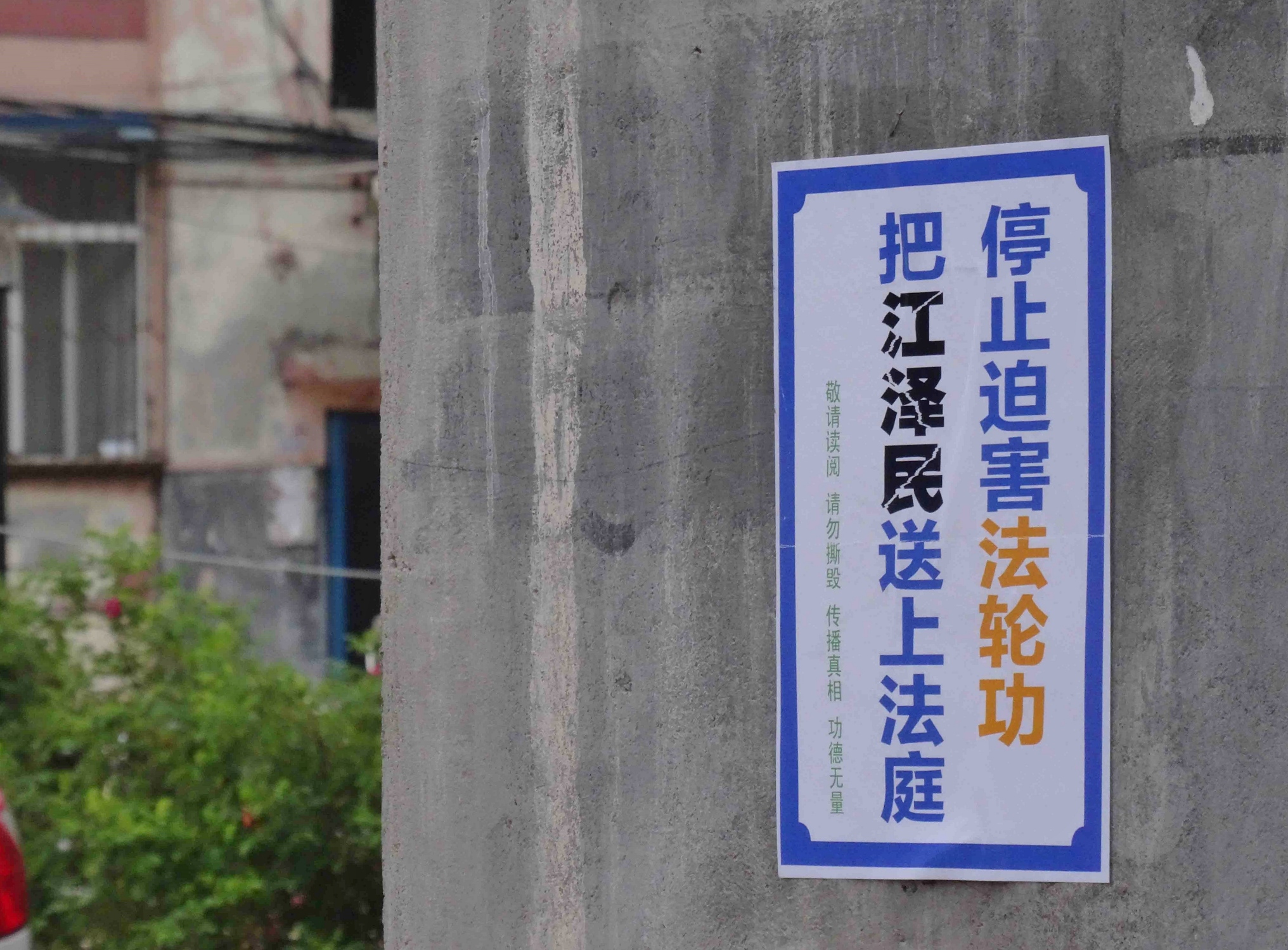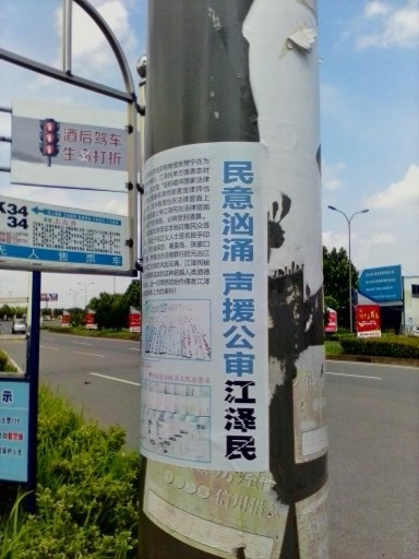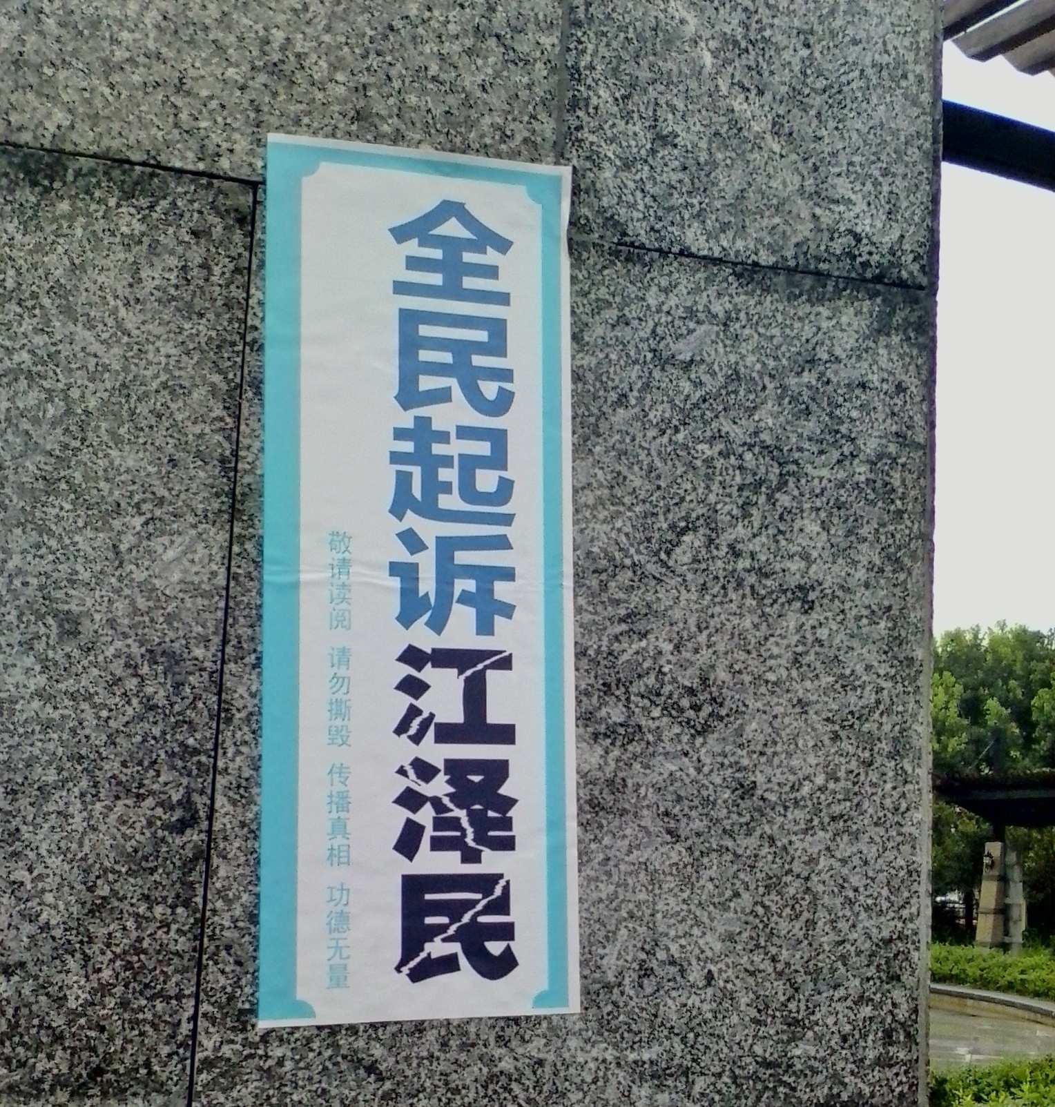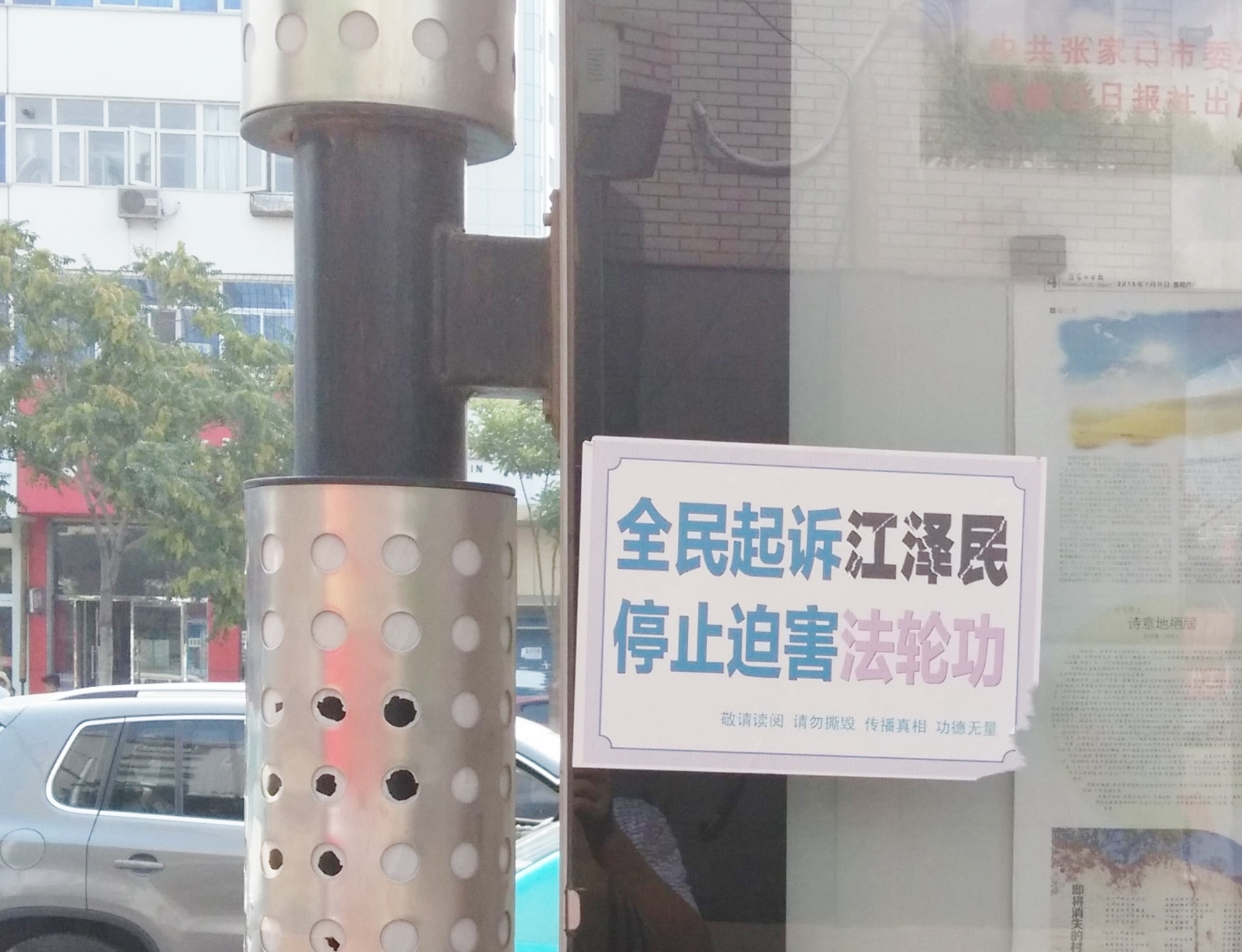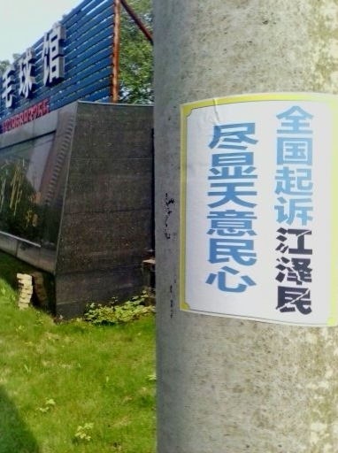 • 河北省张家口街道上的“诉江”不干胶