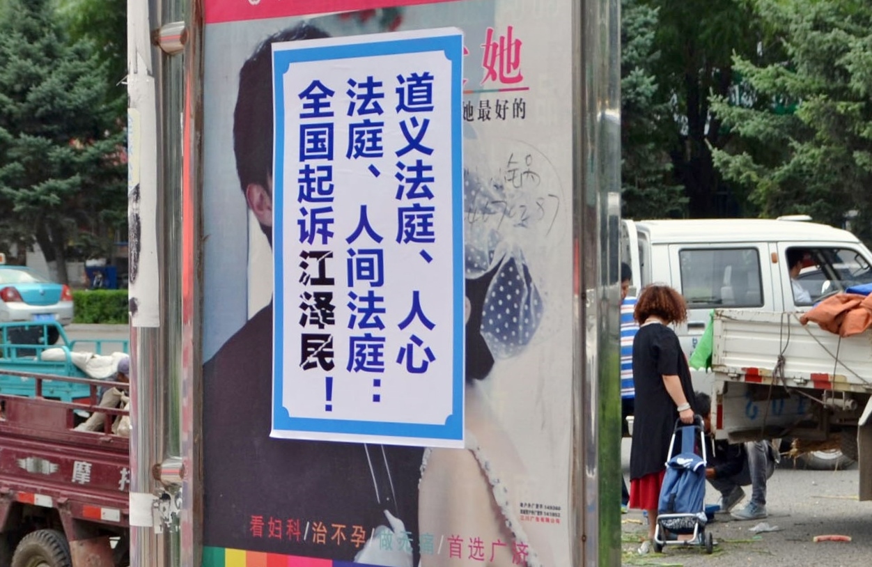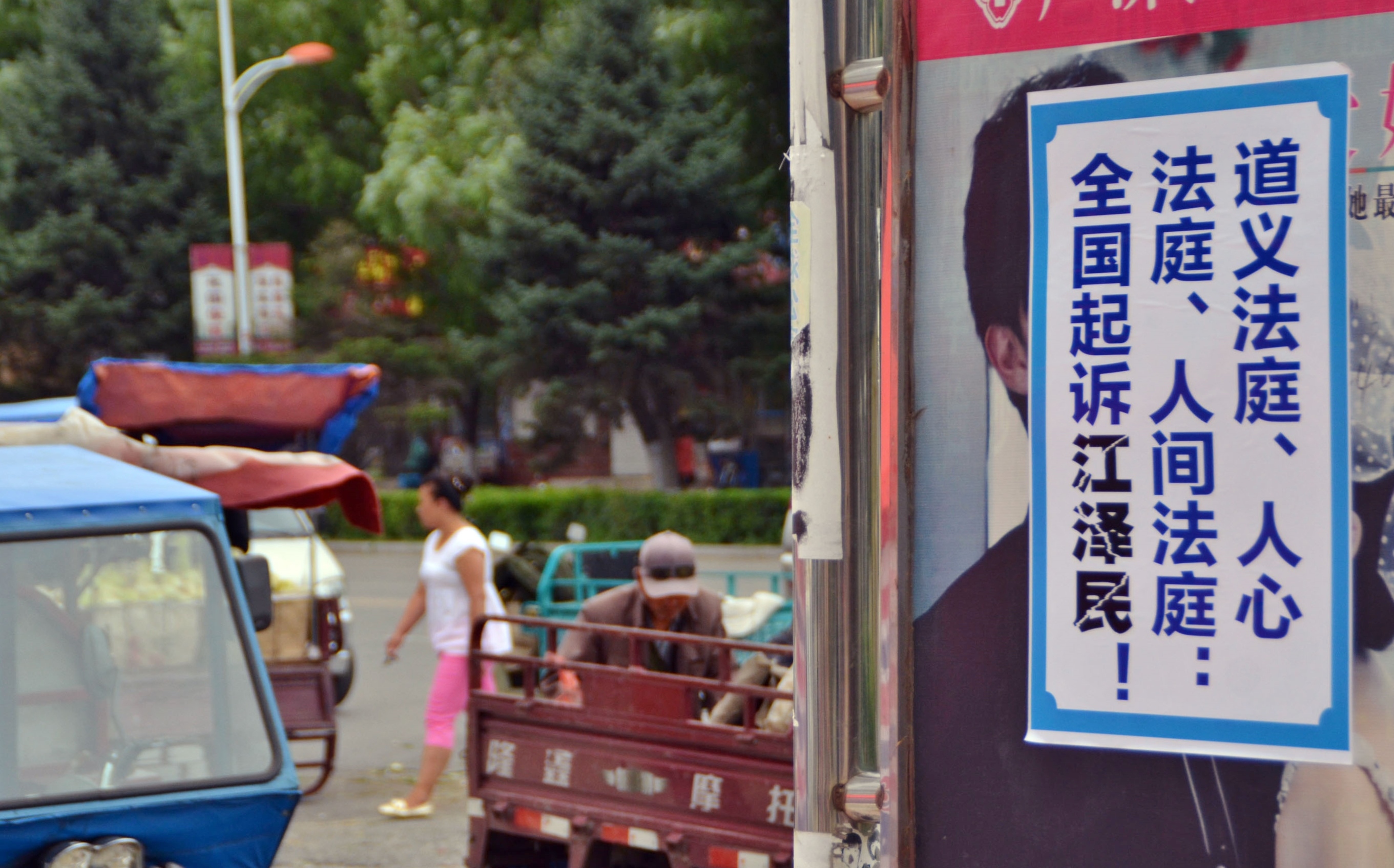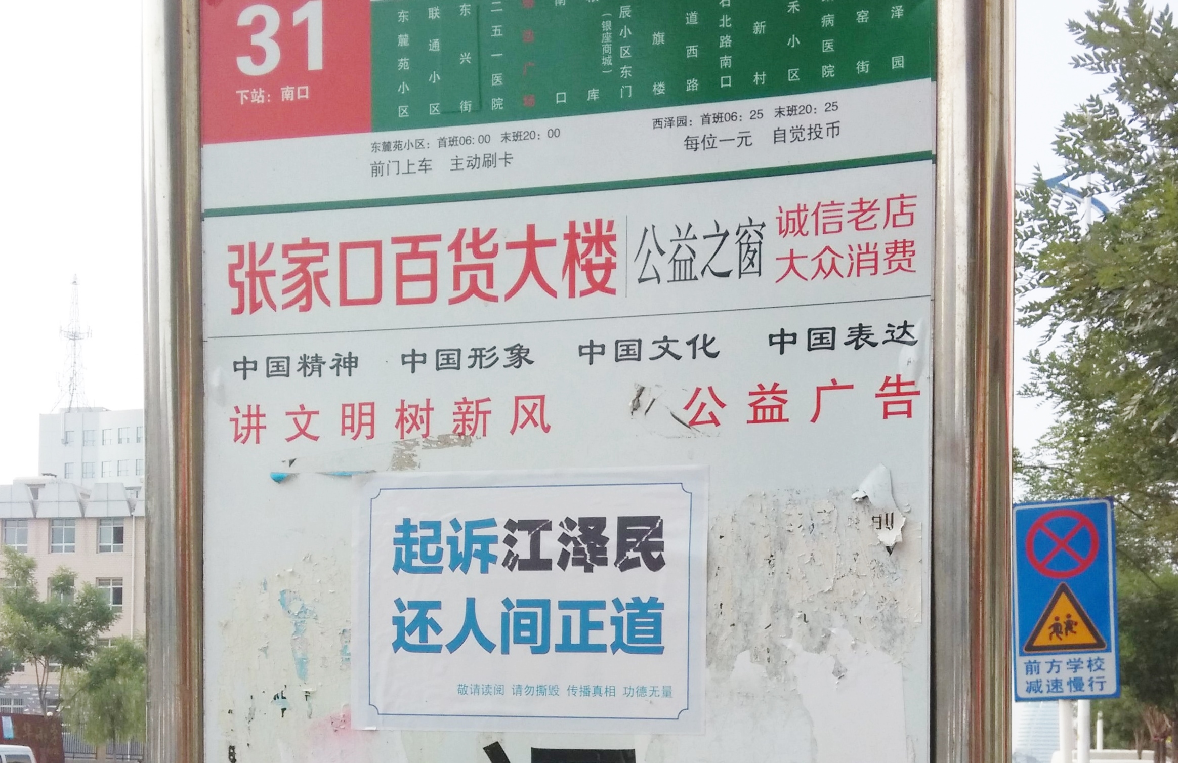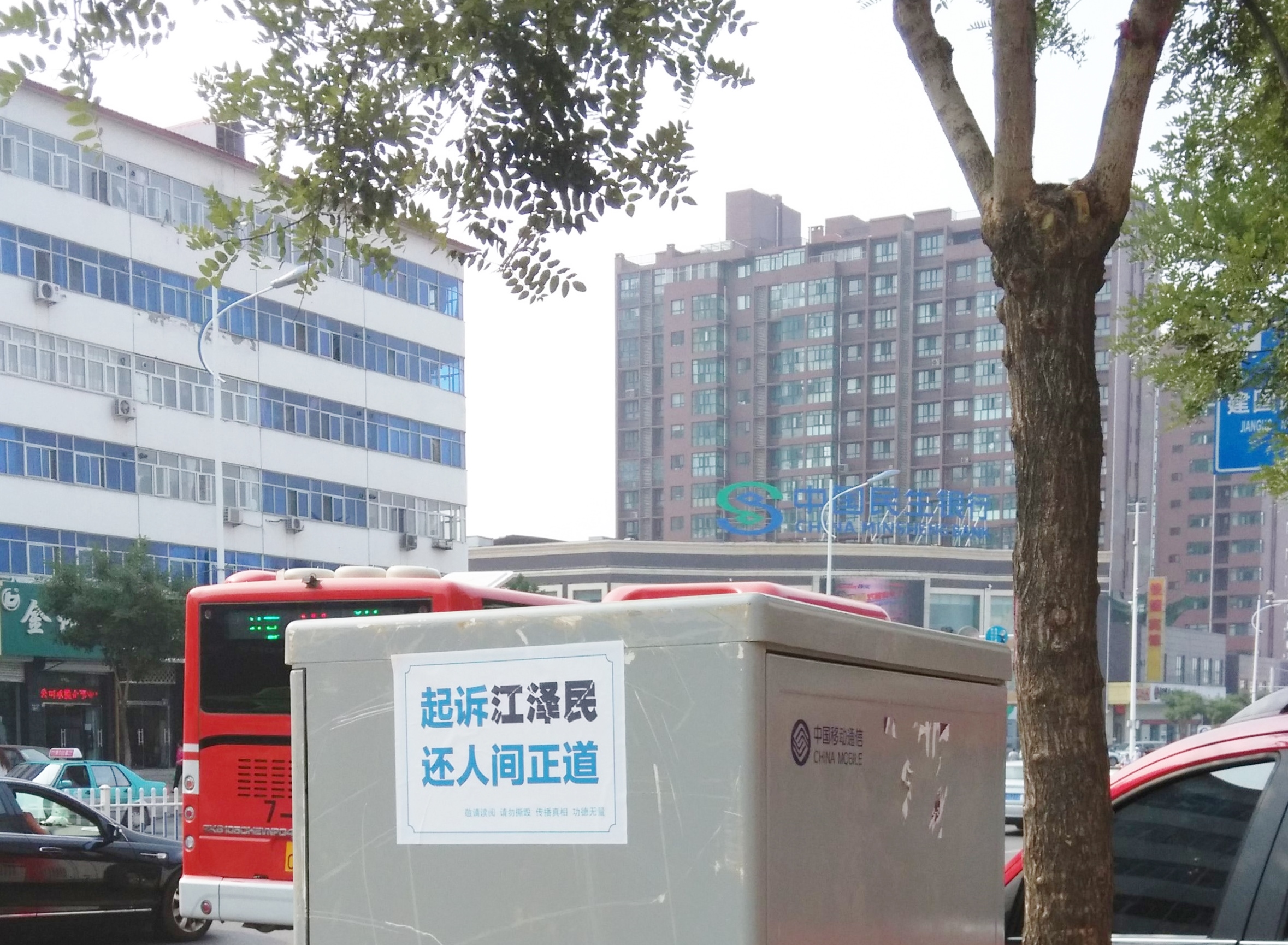 河北省张家口街道上的“诉江”不干胶