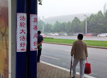 二零一五年七月十七日,济南大街小巷、车站等处出现粘贴的真相标语,内容有“法轮大法好”、“真善忍好”、“审判江泽民还法轮功清白”、“起诉江泽民还人间正道”等。