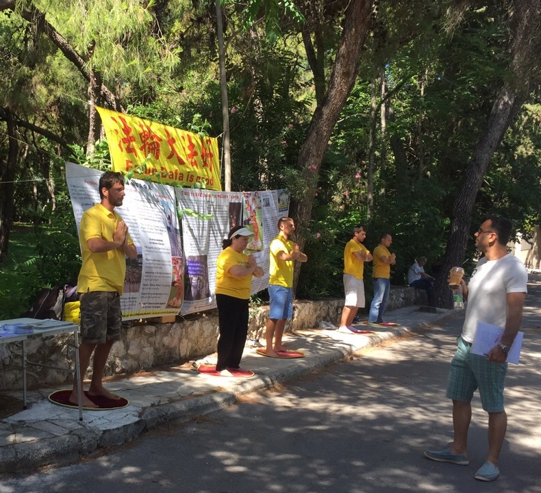 在塞萨洛尼基海湾地区,很多人都在寻找精神提升的途径,有位女士询问法轮功学员,法轮功是否是他所找寻的真相,是否是他生命的意义?这位学员回答道,在他找寻真理的时候,总觉得一个人除了上班,睡觉最后走向死亡,没有别的生活意义是很可悲的,他说:“生命的意义是提高自我,成为向内找自我反省的人,这也是我们的责任。”这位女士表示,现代的人总是看别人的错误,批评别人而不反省自我。