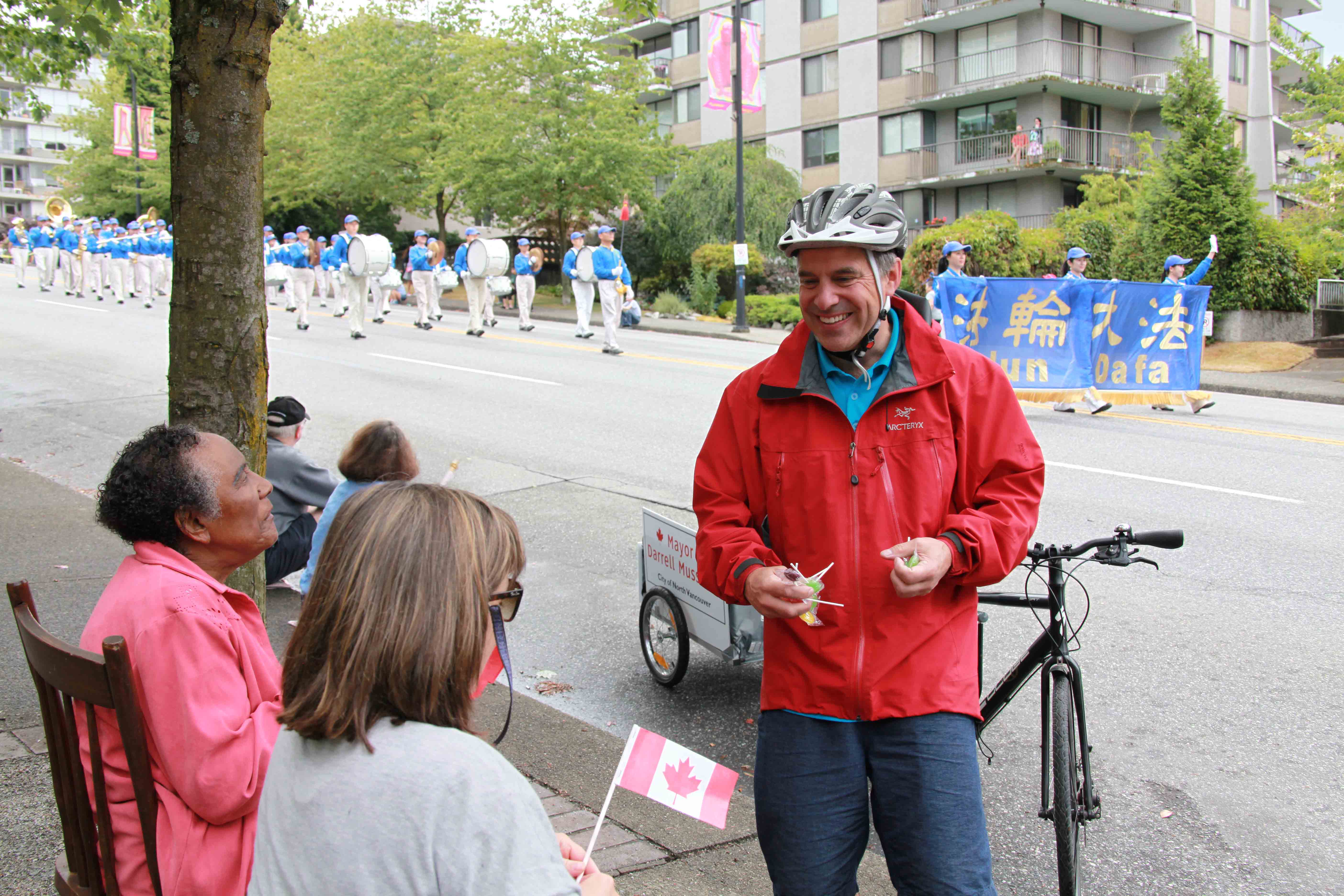 北温哥华市市长Darrell Mussatto先生表示,他和法轮大法学员同步游行,法轮大法学员用慈悲心关爱他人是很伟大的团体。