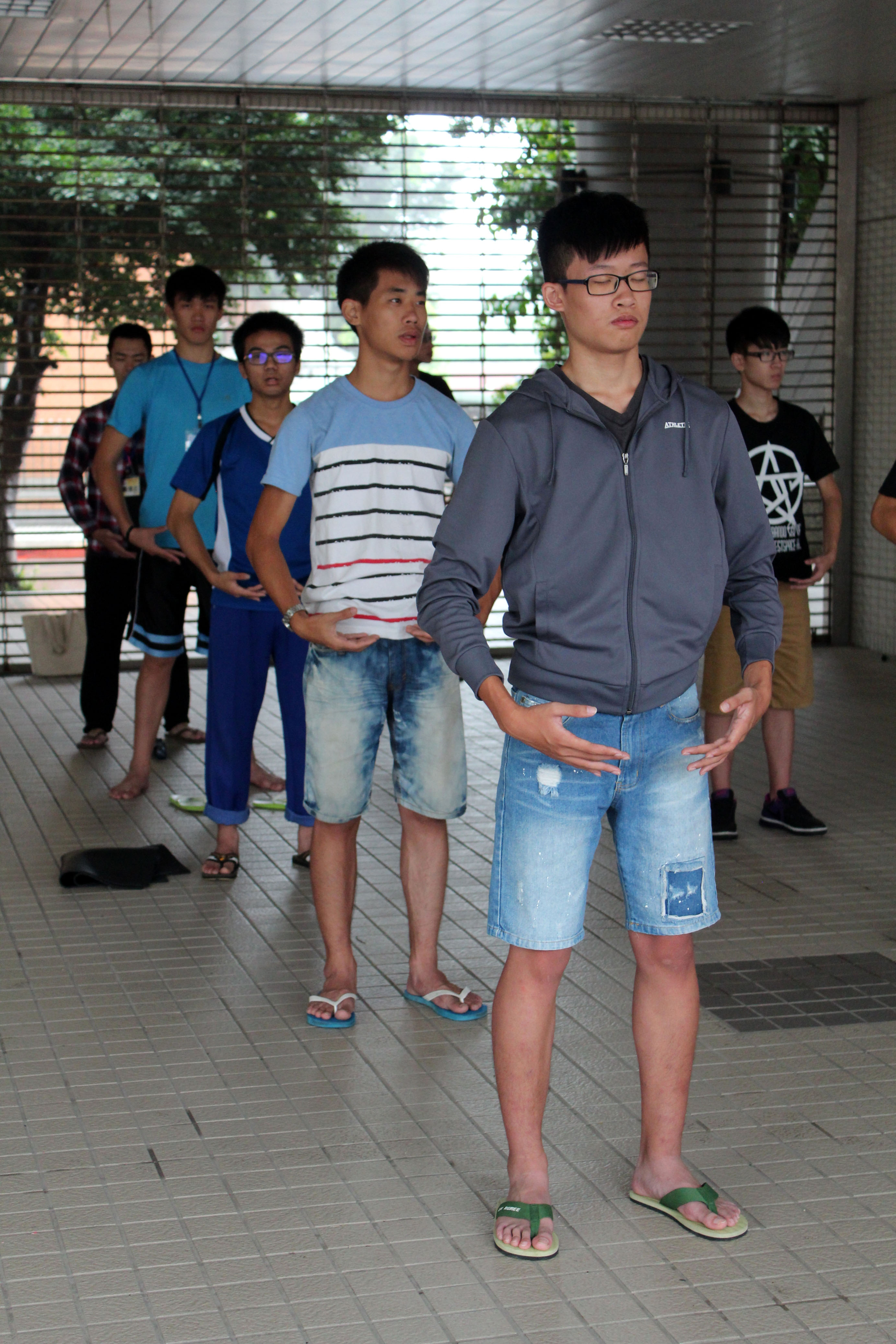 赖怡文同学表示,她在炼第五套功法时,脚痛,非常的麻、痛,甚至表情有点不耐烦,但是心底的意志力告诉自己要忍耐,终于炼功音乐结束,她放下脚的同时麻痛感仍存在,但是身边的伙伴,虽然过程中也是痠麻,但是炼功结束后却是一派轻松的感觉,一问之下,才知道对方虽然痛麻,但是过程中内心是平和的,结果当然不同。这让她体悟到,处理事情的过程中,要学习以平静的态度对待。