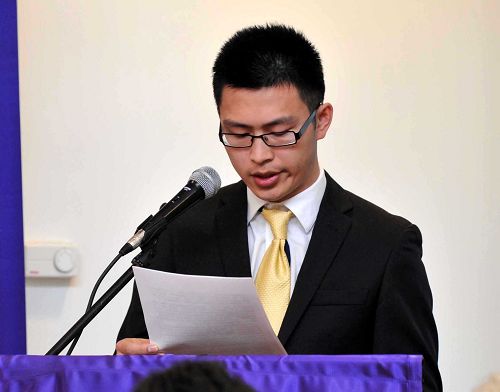西人大法弟子丹尼尔从二零零五年三月开始修炼。修炼伊始,他就知道他必须学师父原本的话,于是他在语言学校学了约十个月的中文。现在他已能流利的阅读中文《转法轮》,也能看懂九天讲法,当天法会的交流也是用中文发言。参与推广神韵期间,他连续两个月开着被学员称作“快乐小卡车”的神韵广告车穿梭在大街小巷。夏天就像坐在烤箱里,他不放在心上,就希望人们能看到神韵广告。在商场推广神韵,因为学员少,他毛遂自荐,到商场一直坚持到神韵开演。他悟到如果有学员叫他做事情的时候,很可能就是师父的安排,因此他是无条件的配合。