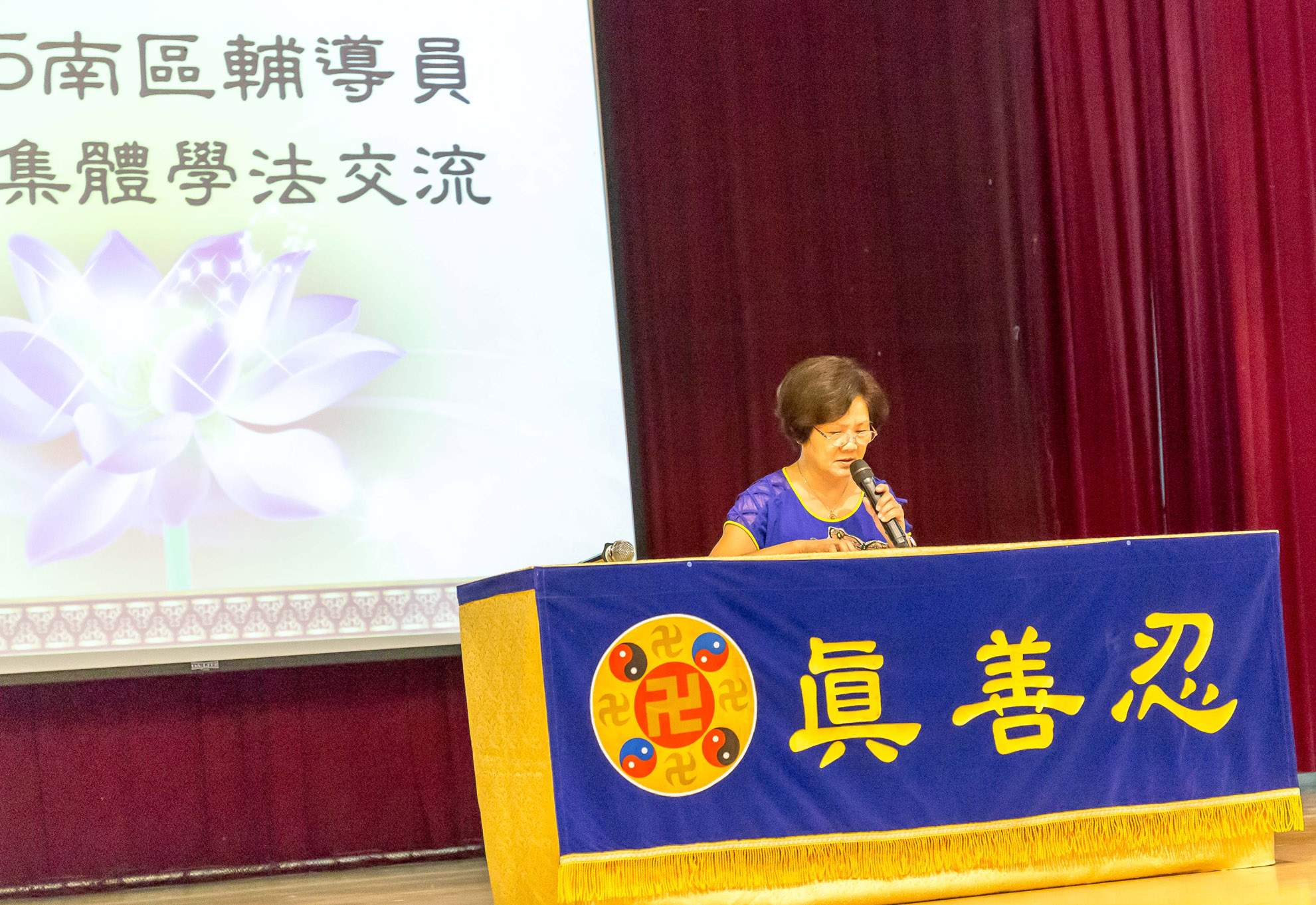 ![]() 图4-5:台湾南区辅导员学法交流会,十多位学员上台分享修炼心得,比学比修,互勉精進。 |