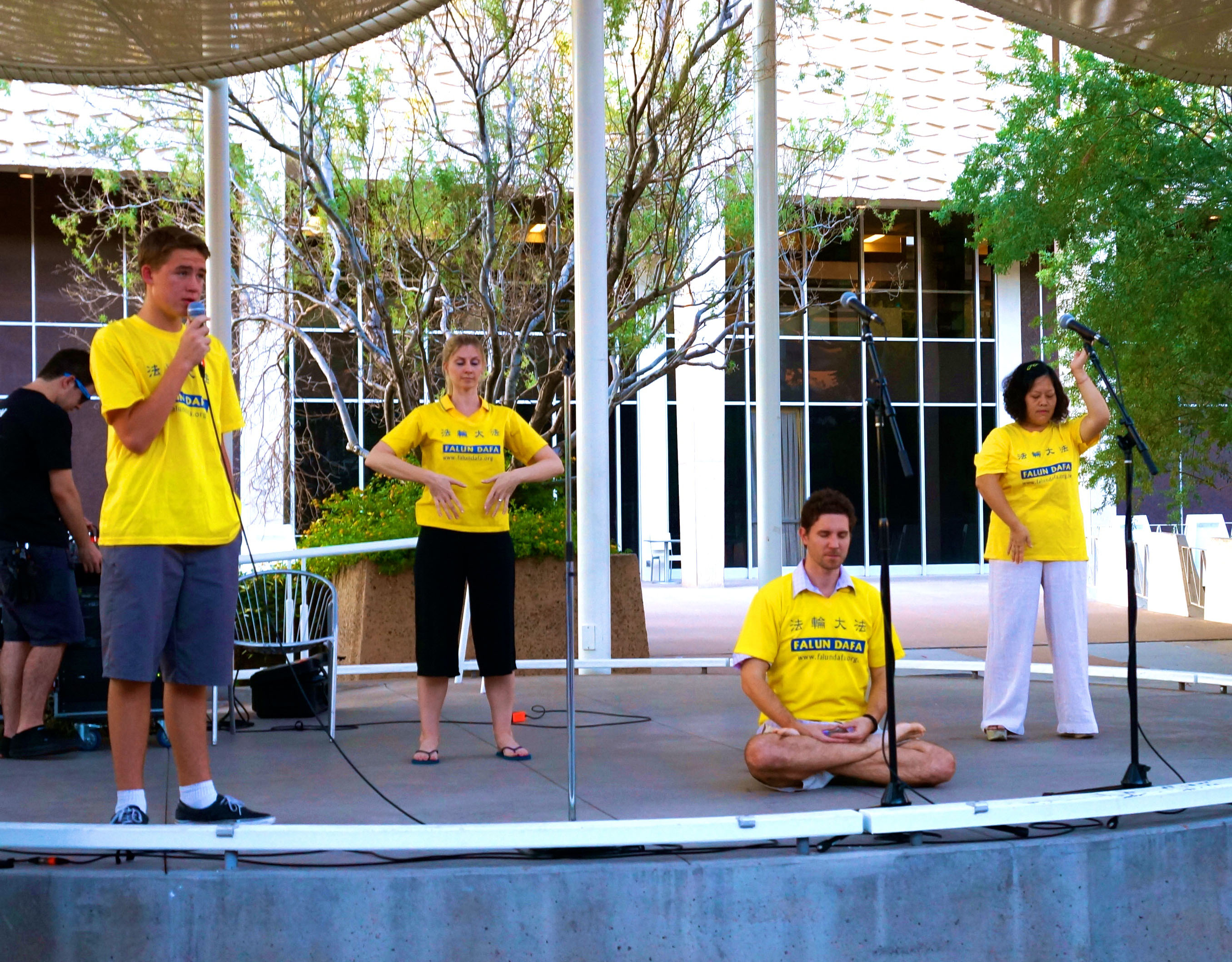 ![]() 明慧学校夏令营的集体炼功 |