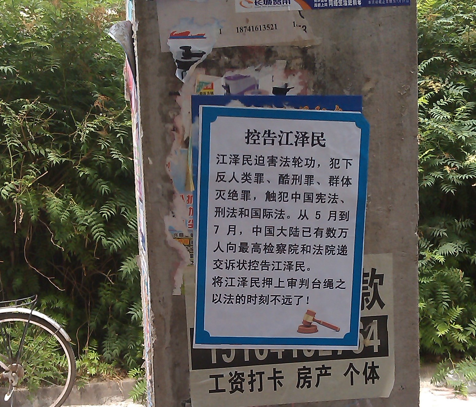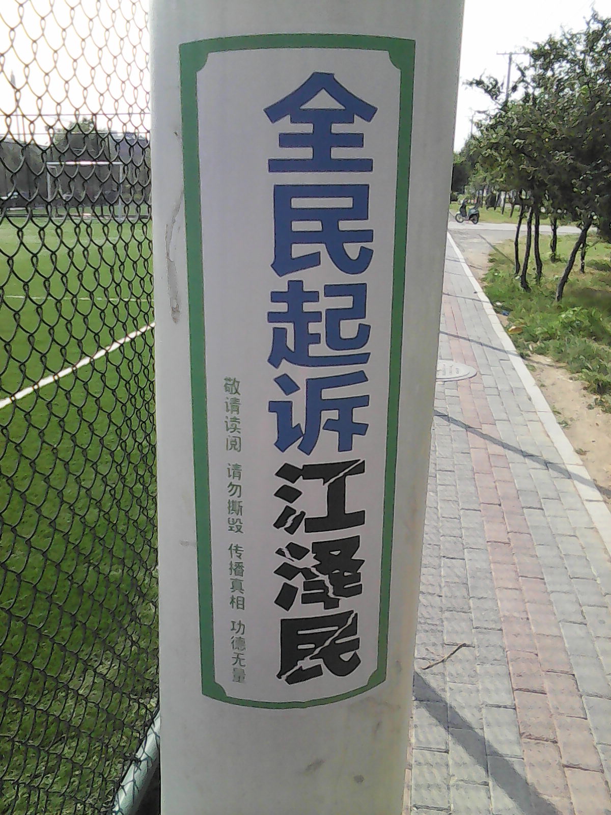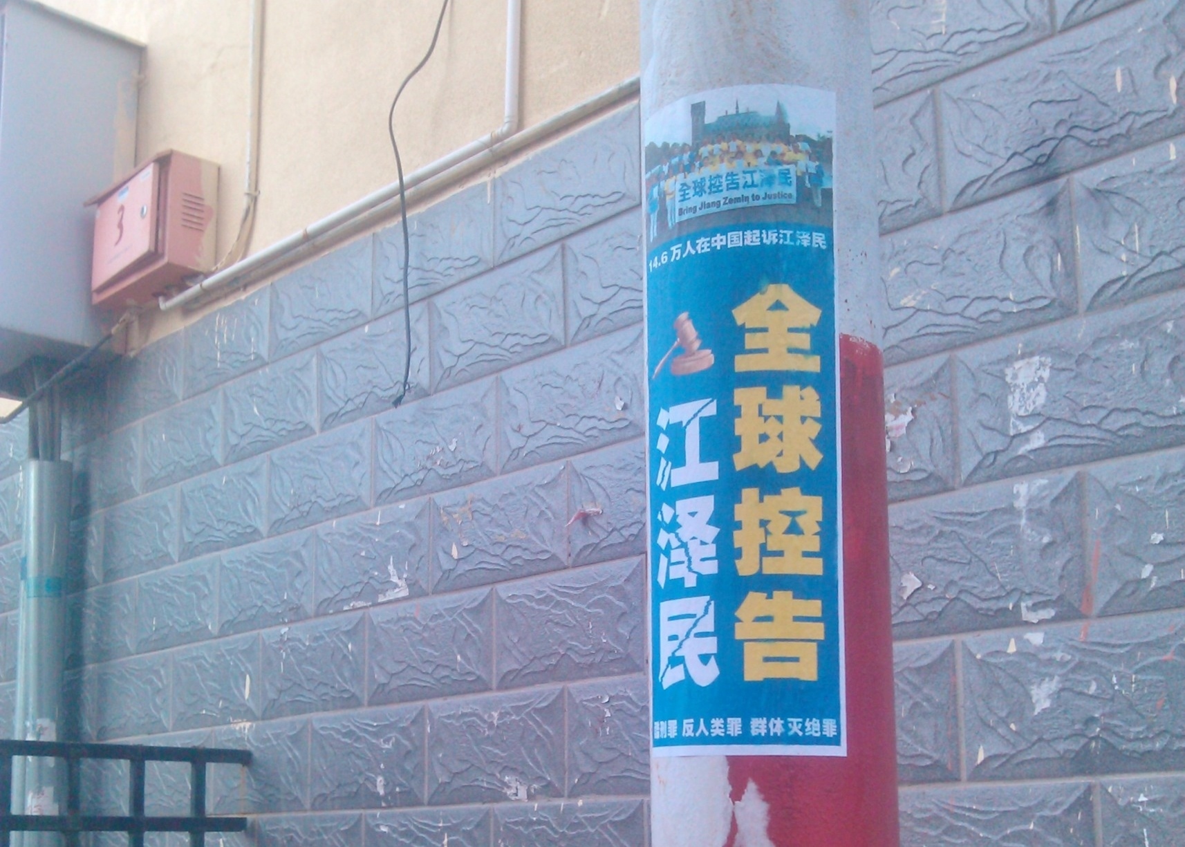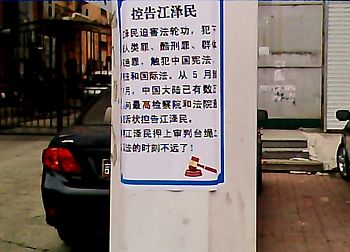 南京市街头人们见到“全球起诉江泽民”、“全球控告江泽民”等真相标语。以无声的语言告诉迷中的人们,尽管法轮大法蒙冤十六载,修炼人的意志从未动摇。江氏集团的罪恶即将被清算,江泽民即被来自世界各地的人起诉。还法轮大法清白的一天即将来到。