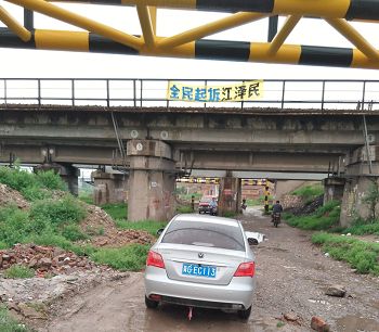 自诉江大潮开启,河北省张家口市法轮功学员和他们的家人纷纷参与,将起诉江泽民的诉状投寄给两高,同时在市、区、县主要交通要道、立交桥、街道路口、菜市场等处悬挂真相条幅,将“法轮大法好”、“真善忍好”和“起诉江泽民”的信息告知当地的百姓。