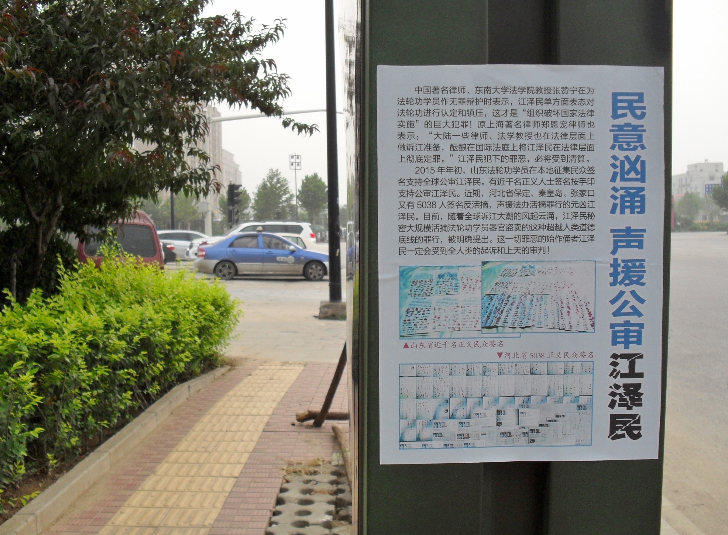 今年七月下旬,莱州市珍珠镇的宋洪军、土山镇的孙守煜和路旺镇的张立忠三位法轮功学员,向最高法院和最高检察院投寄了起诉江泽民迫害法轮功的刑事控告书,因而被莱州市六一零、国保警察以此借口绑架抄家。在今年“五一”的时候,最高法院提出了“有案必立、有诉必理”的承诺。此后海内外有十八万人起诉江泽民迫害法轮功。法轮功是中国最大的冤案,十六年里使上百万的法轮功学员失去生命,证据显示有超过六万五千名法轮功学员在被关押,而且是人活着的时候,被强行摘取器官做器官移植,贩卖赚钱。