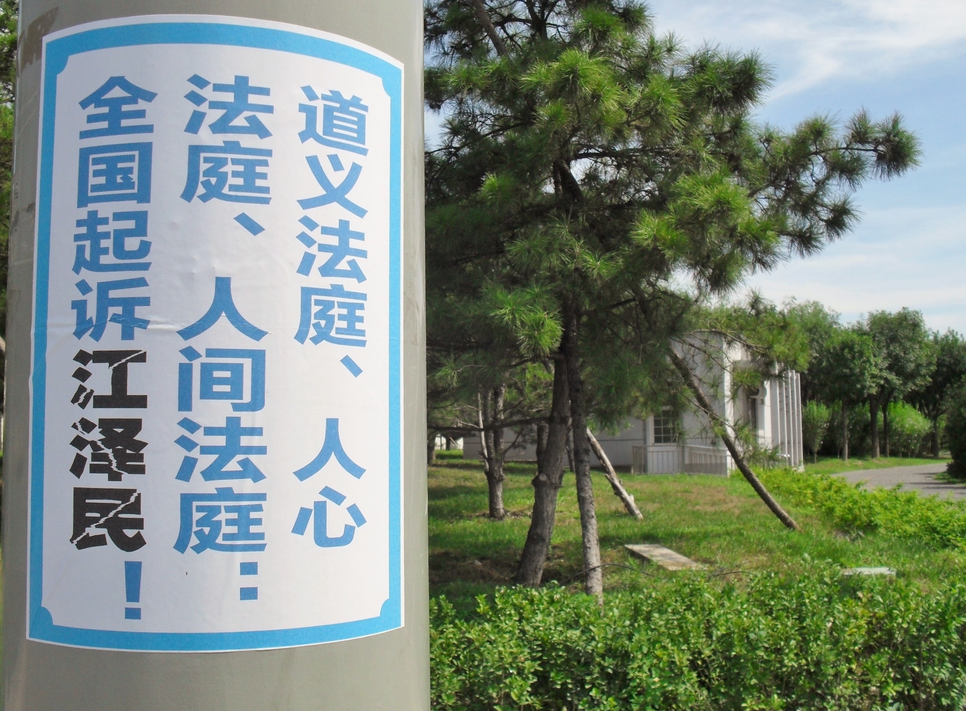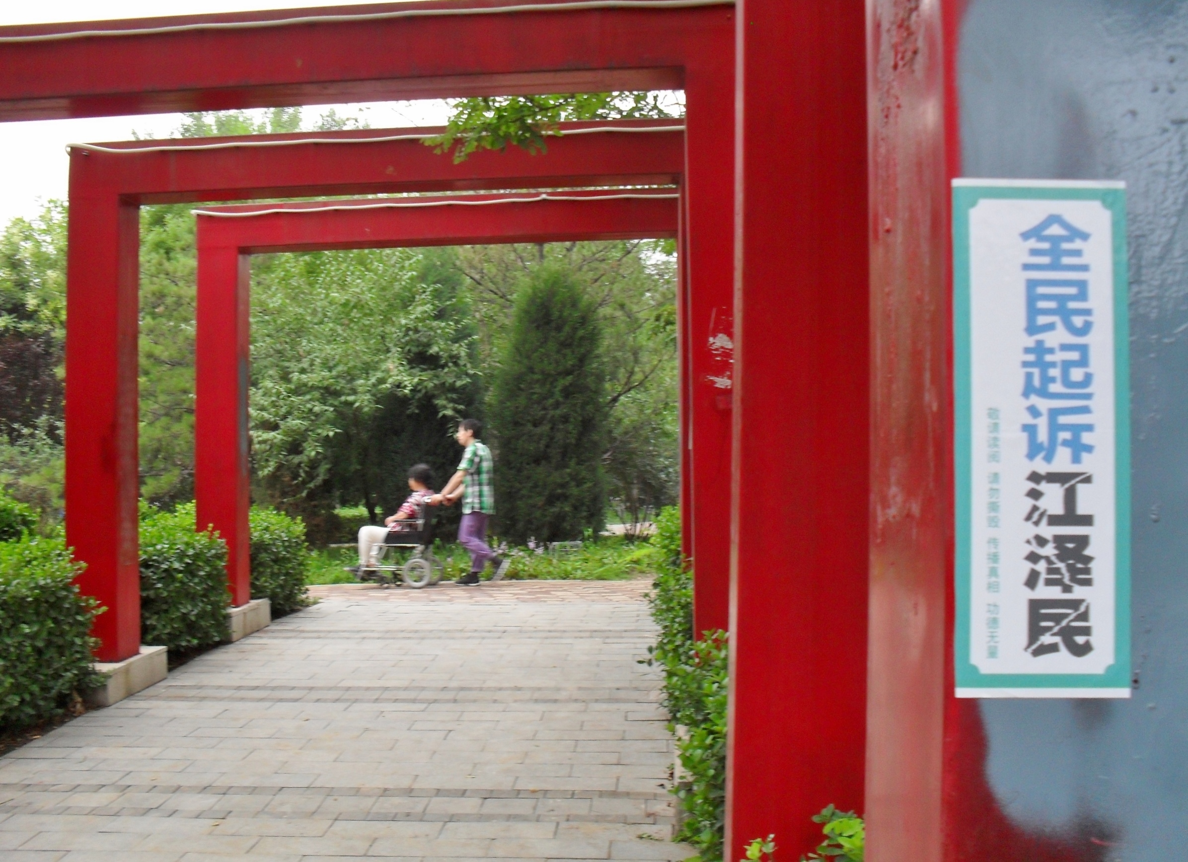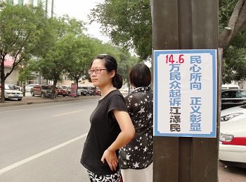 我今天起诉江泽民,不仅仅是为我丈夫讨回公道。我们师父教诲我们修炼人没有敌人。我已没有怨恨,我只想以我们的悲苦唤醒众生,唤回迫害者残存的良知。法办江泽民,惩办元凶,还人间正道,还司法公正,还法轮大法清白,还我师父清白!