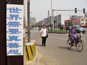 法轮功学员按照宇宙特性“真、善、忍”的原则修心向善,在生活中做一个好人。法轮功祛病健身有神奇的功效。一九九九年迫害之前,全国有一亿人在修炼法轮功。善恶有报是天理,我们已经看到了迫害法轮功的元凶在遭报,包括周永康、李东生、徐才厚、苏荣、薄熙来、王立军等高官,接下来马上就是江泽民了。希望莱州市的百姓明白“法轮大法好,真善忍好”,谴责发生在我们身边的迫害。