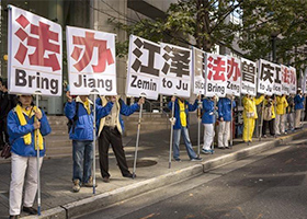 习近平抵达美国西雅图 法轮功学员呼吁法办江泽民(图)