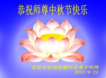北京丰台西局俩大法弟子恭祝师尊中秋节快乐!北京市苏州桥学法小组大法弟子祝慈悲伟大的师尊中秋节快乐!
