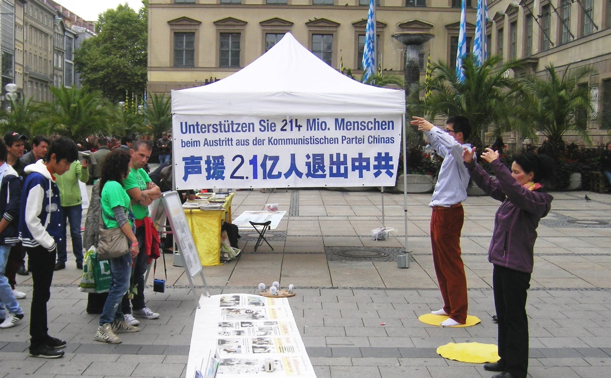 一对香港夫妇询问,中共为何镇压法轮功?了解到以谎言和暴力维持统治的中共不能容亿万民众信仰“真、善、忍”,因此发动迫害,这对夫妇又问炼功有何好处? 为何要学法轮功? 法轮功学员给他们详细讲述了法轮功带给人身心升华的神奇功效。