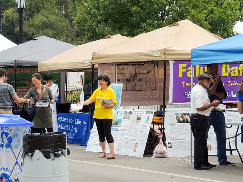 法轮功学员向当地人与中国留学生们介绍了以“真、善、忍”为修炼原则的法轮功,并讲述了十六年来中共残酷迫害法轮功的真相。