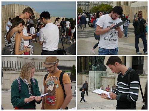 • 艾菲尔铁塔下 游人签名声援诉江大潮(图)