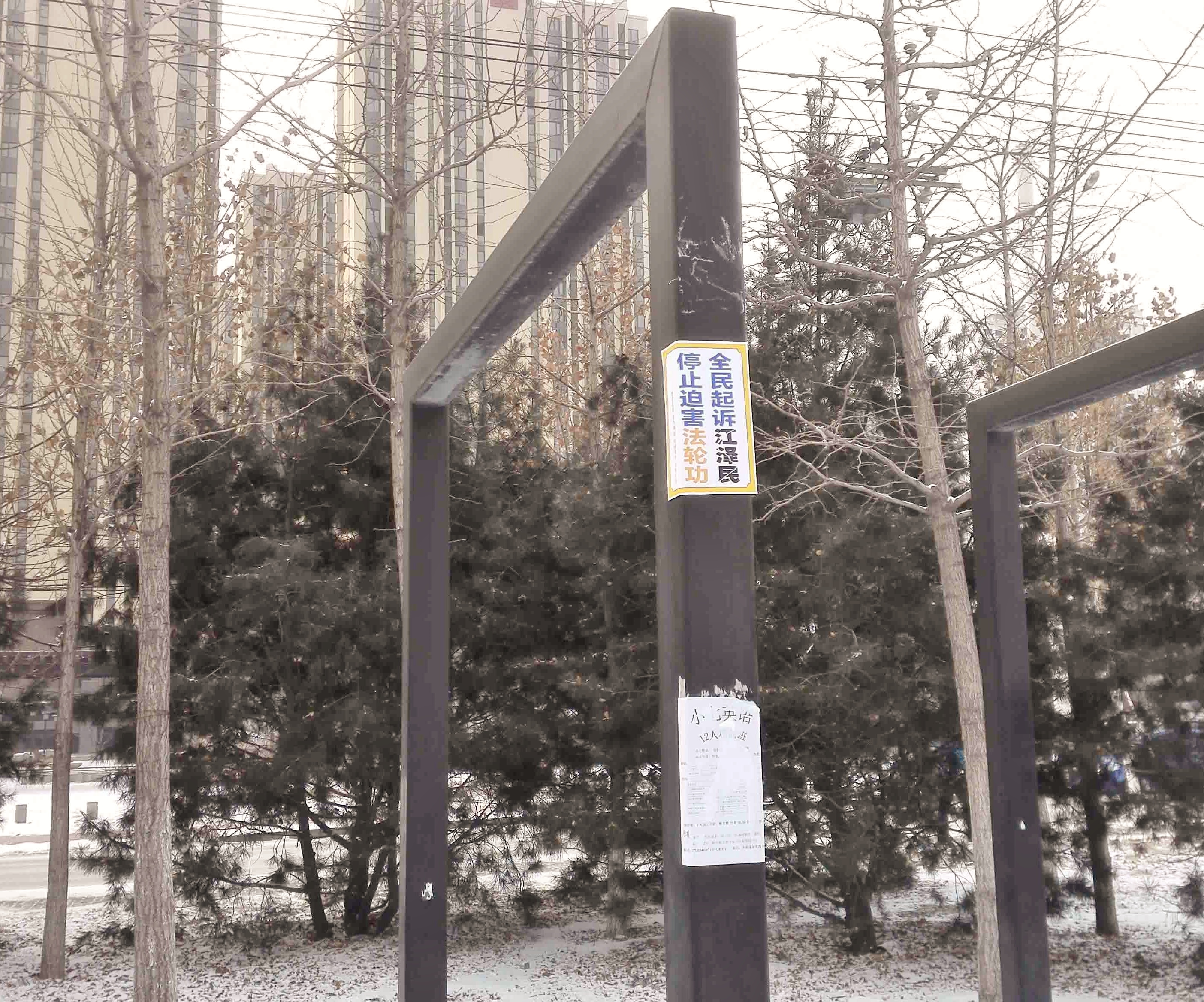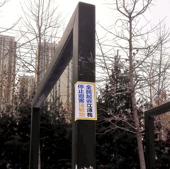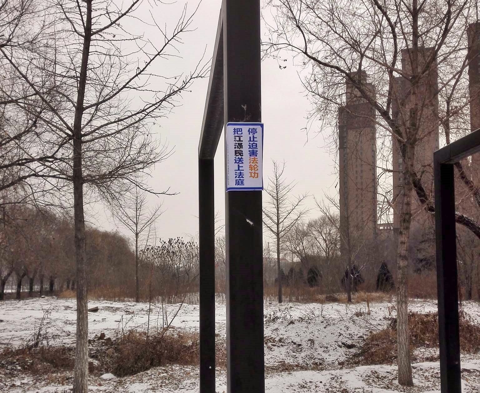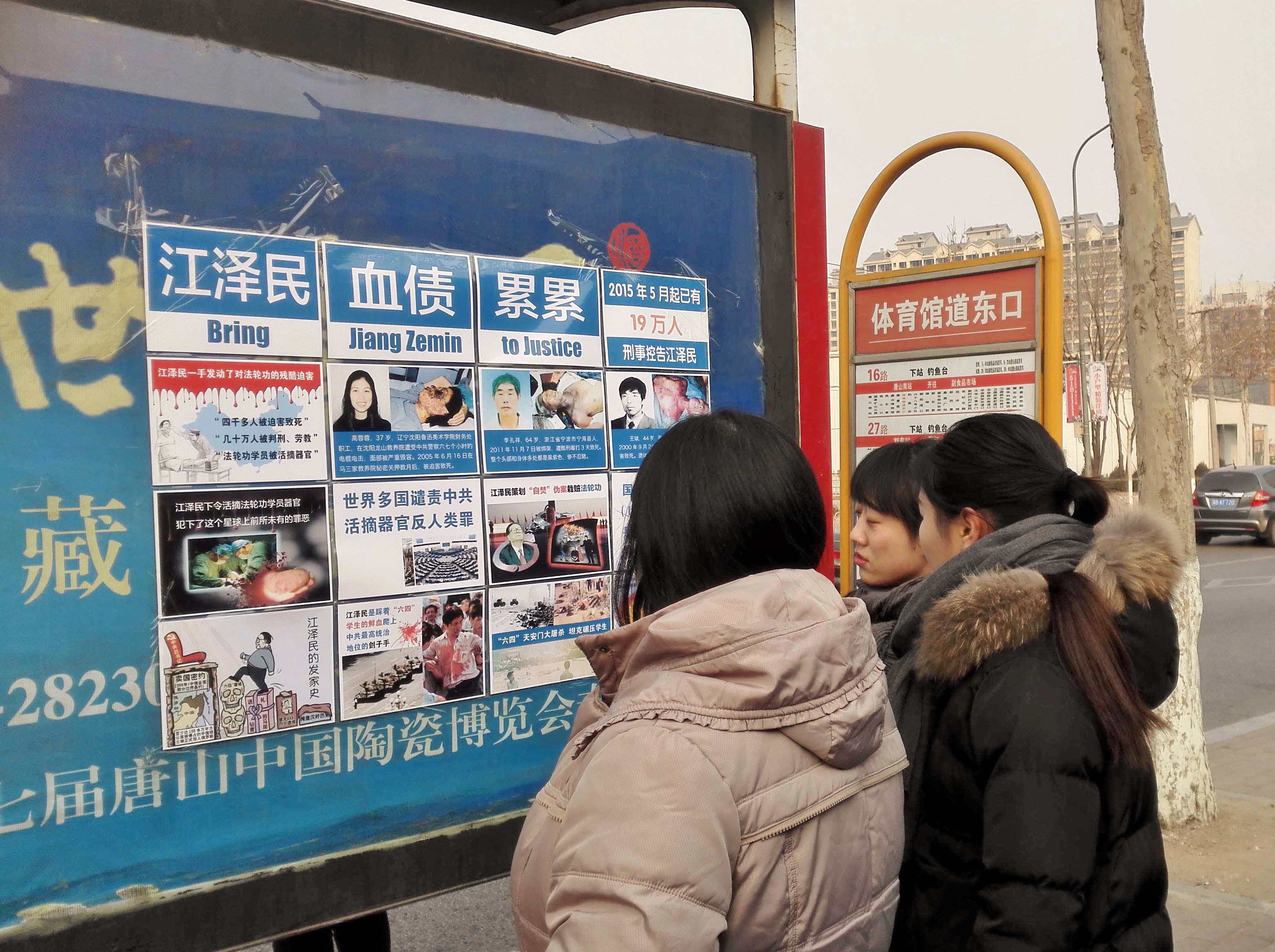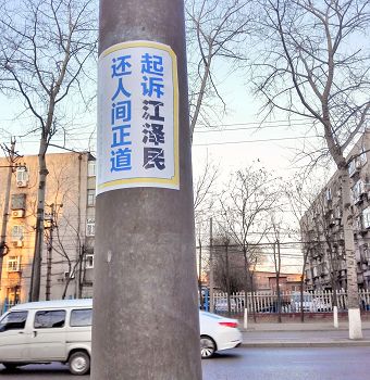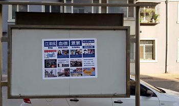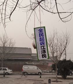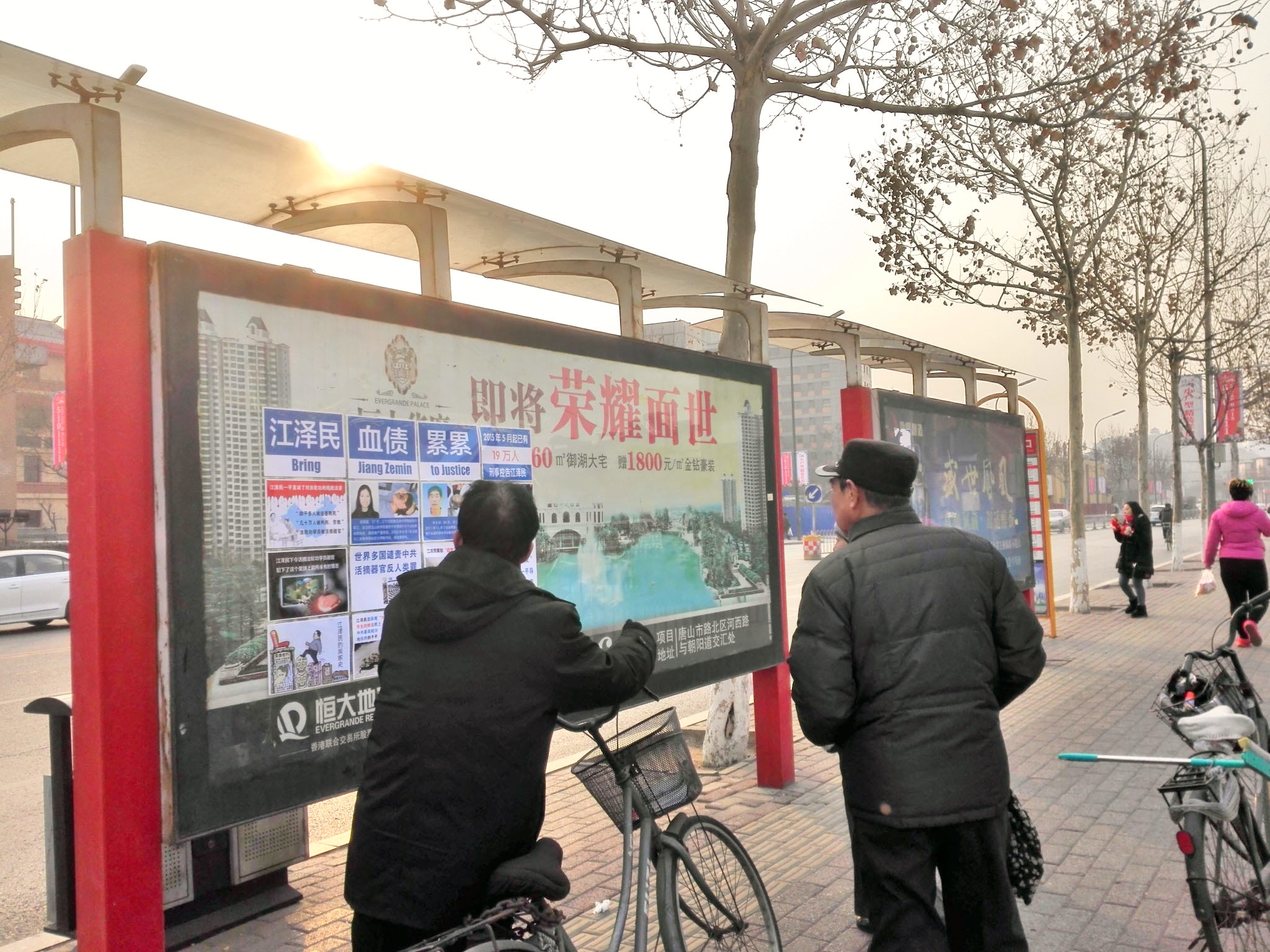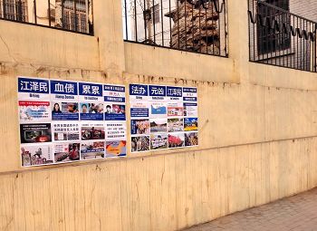 近来在河北省唐山市的各大街小巷都出现了法办江泽民、残酷迫害、活摘器官等展板,还有关于起诉江泽民的标语。