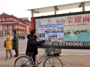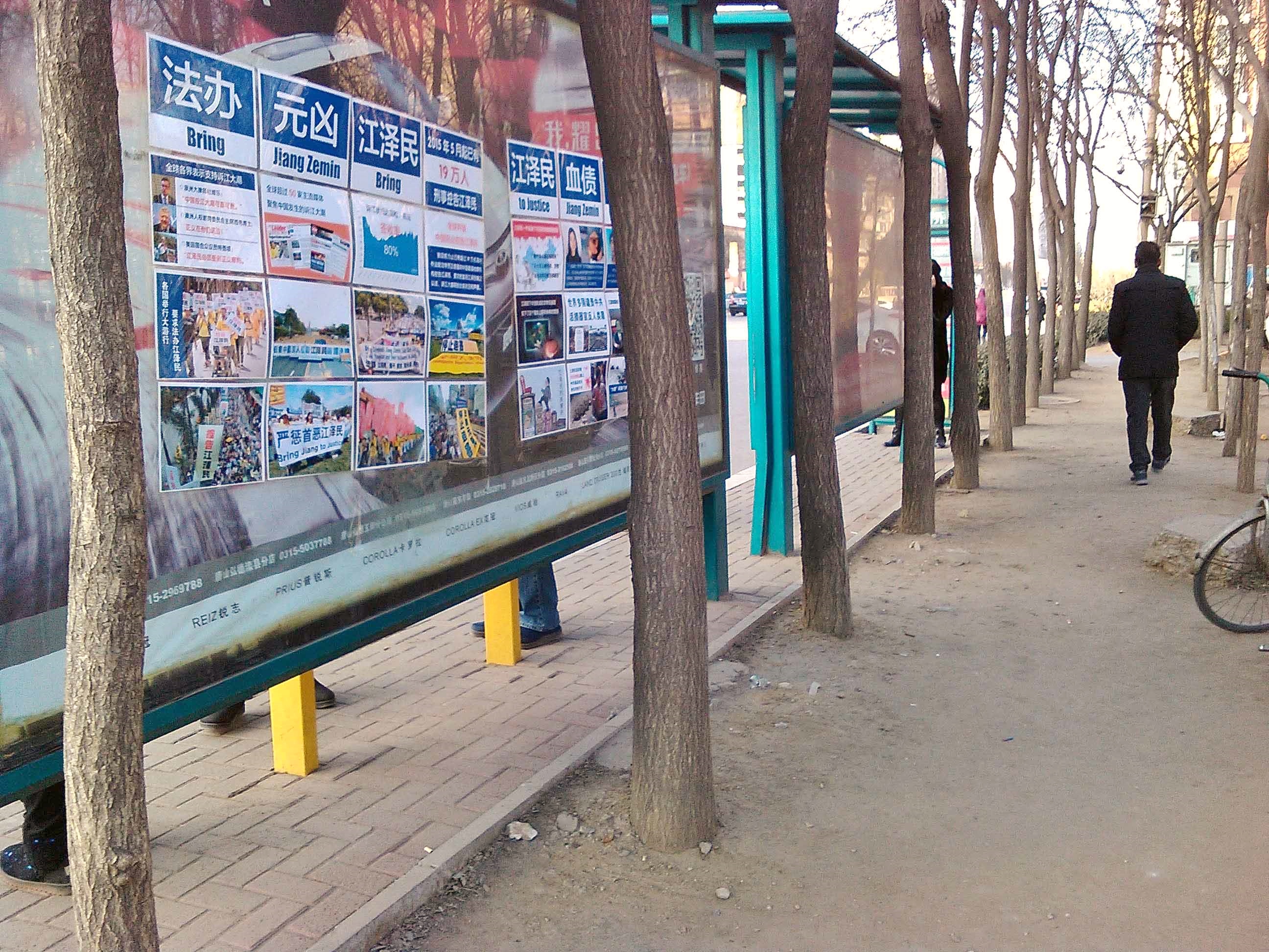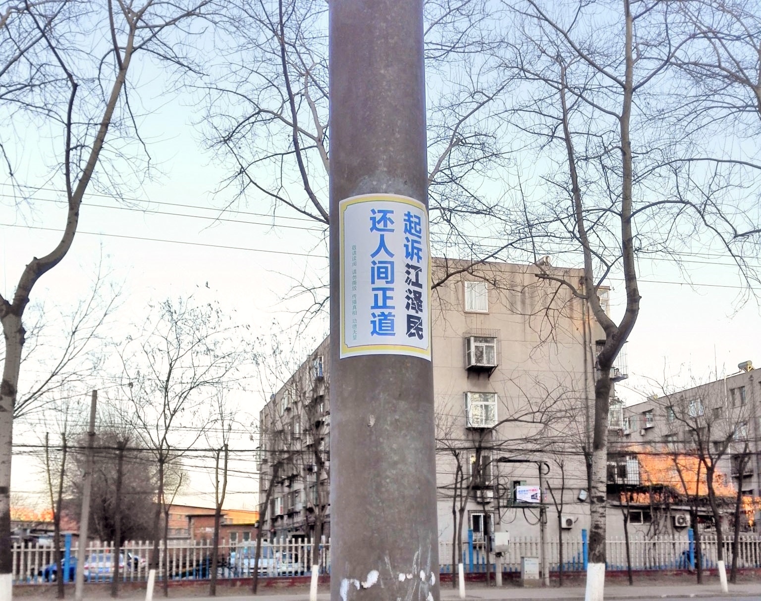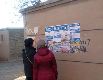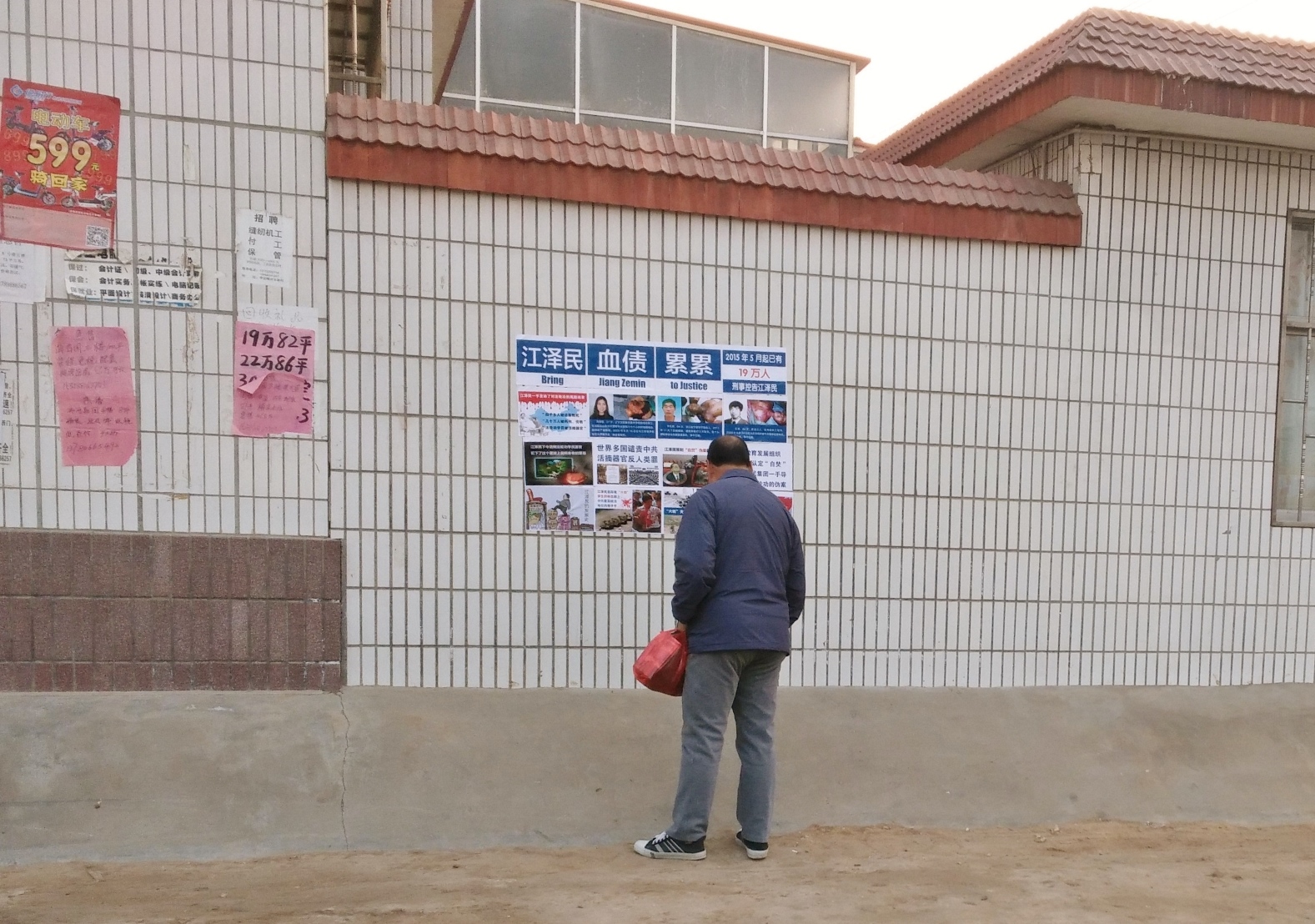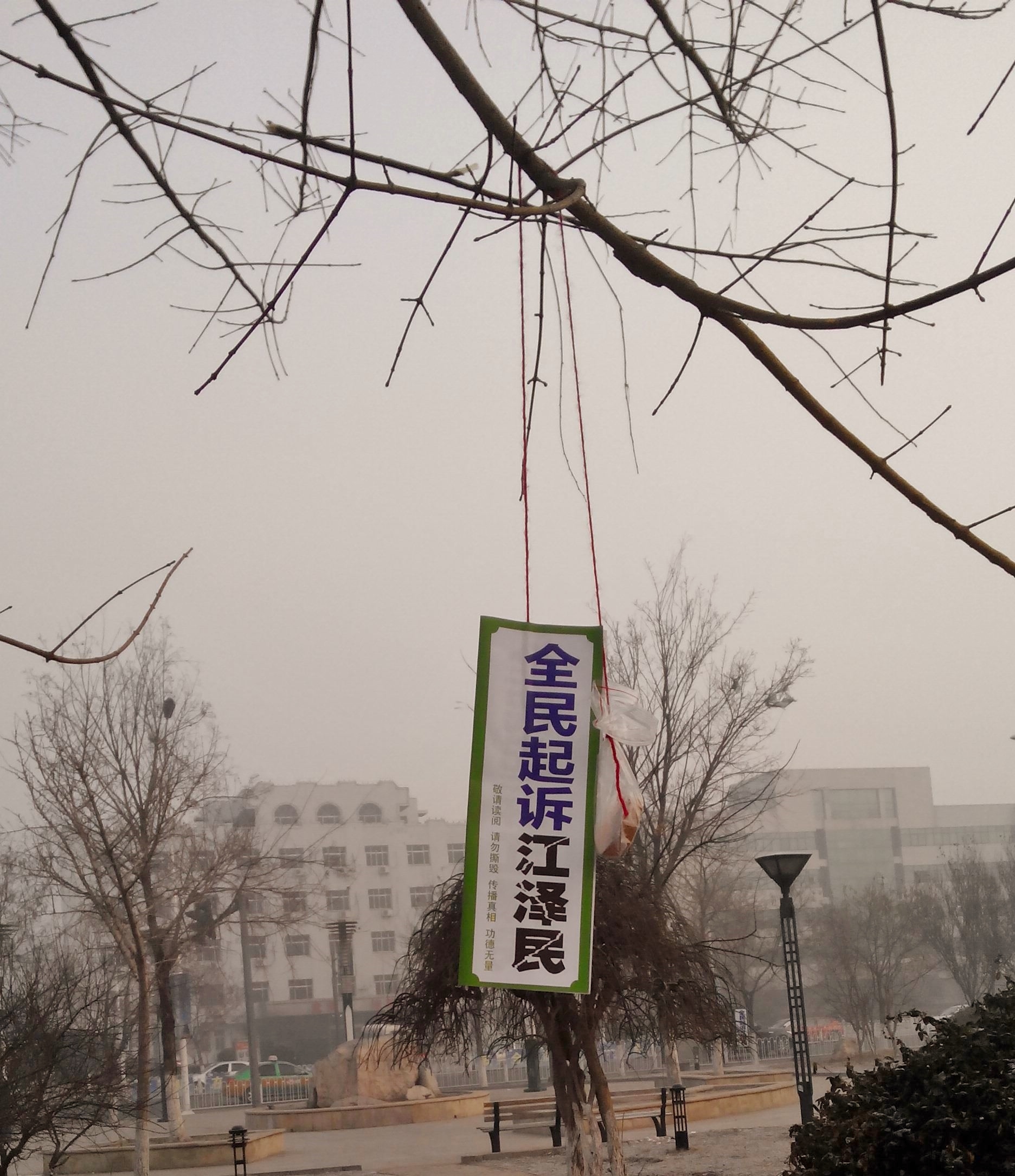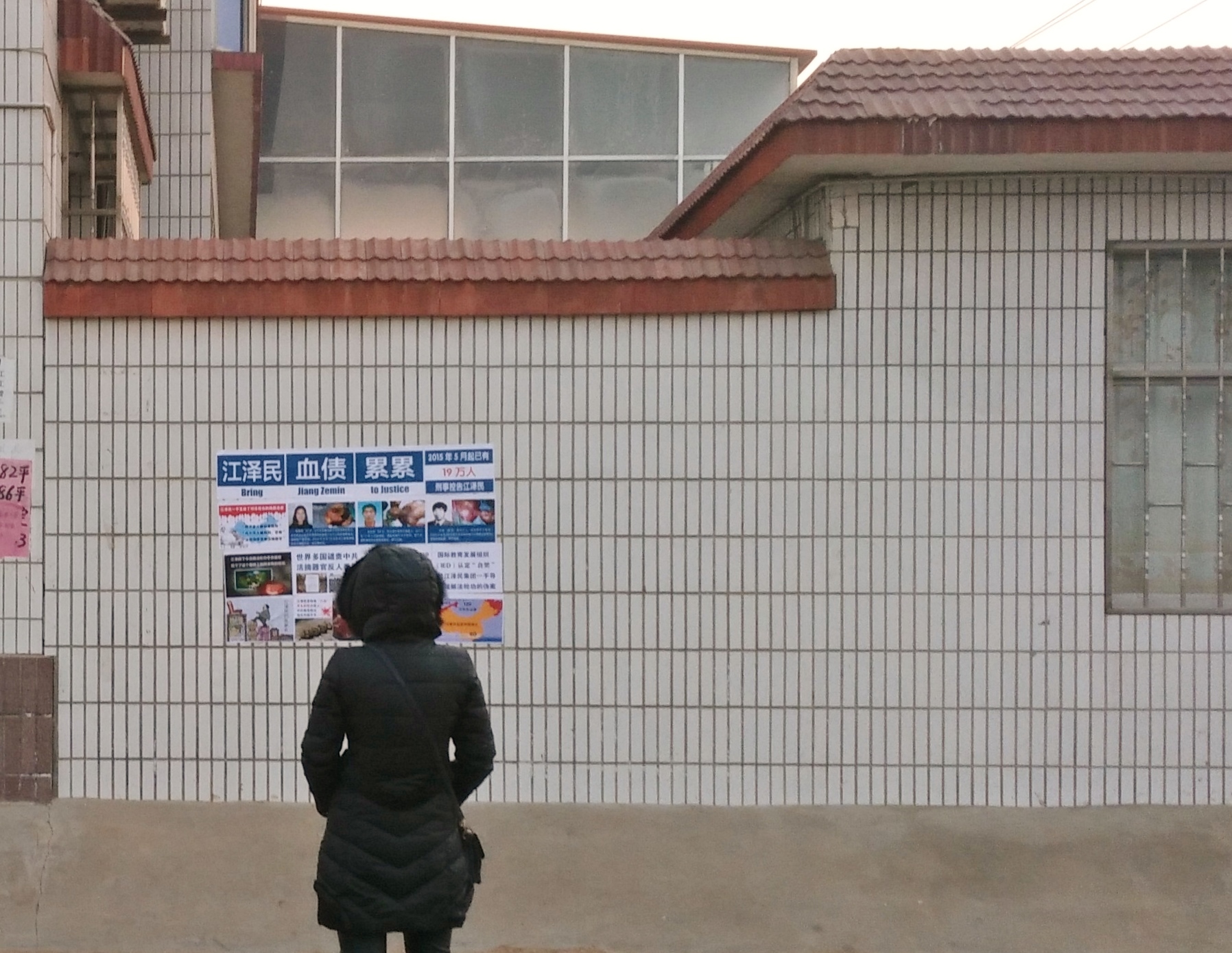 【明慧网二零一六年一月二十三日】二零一六年新年期间,中国大陆从北到南许多城镇的街头巷尾、居民住宅区、集市出现“法办江泽民”的展板,吸引路人驻足观看。