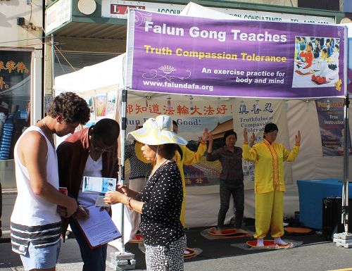 【明慧网二零一六年一月二十七日】(明慧记者夏纯清墨尔本采访报道)二零一六年一月二十四日星期天,澳洲墨尔本越南街依照传统,举办了庆祝猴年的大型节庆活动。墨尔本法轮功学员再次受邀参加,祥和的功法展示,让很多澳洲人驻足。法轮功学员的扇子舞和腰鼓表演,赢得热烈掌声。