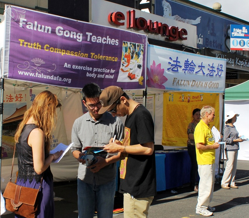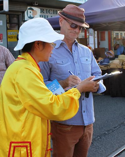 有很多人表示,看到过法轮功学员在唐人街、市中心常年讲真相,希望中共对法轮功的这场迫害早日结束,也祝福法轮功学员一切顺利。还有很多没有听说过法轮大法的人,了解到法轮功学员在中国大陆遭受的迫害都很震惊,纷纷在要求制止中共迫害的征签表上签名。还有不少民众希望在网上了解更多法轮功真相。当天几位华人在现场三退(退出中共党、团、队)。