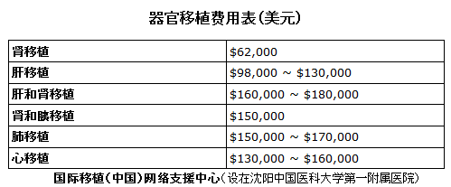 [150]中国医科大学第一附属医院的国际移植(中国)网络支援中心的费用表. 原网站已被关闭,存档链接: https://archive.is/hFfVR