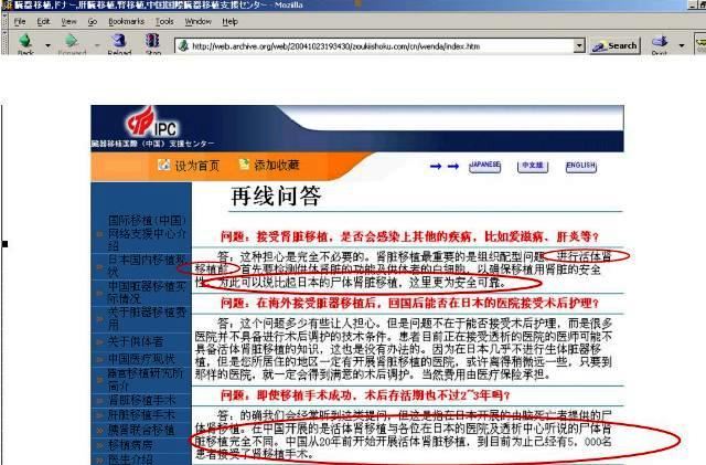 [144]中国医科大学第一附属医院的国际移植(中国)网络支援中心在网站上对其器官移植质量的说明,强调用的是“活体”. 该网站已被关闭, 存档链接: https://archive. is/CqWNU
