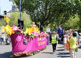 一月二十六日上午,澳洲墨尔本市中心举行了一年一度的国庆日(Australia Day)盛装大遊行,当地法轮大法学会再次受邀参加。