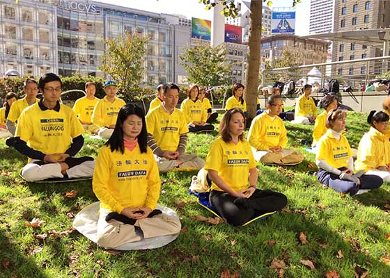 美西法轮大法修炼心得交流会召开前夕,法轮功学员在旧金山市四十六个公园、广场和地标景点展开讲真相活动,如同到处开放的“真相之花。”