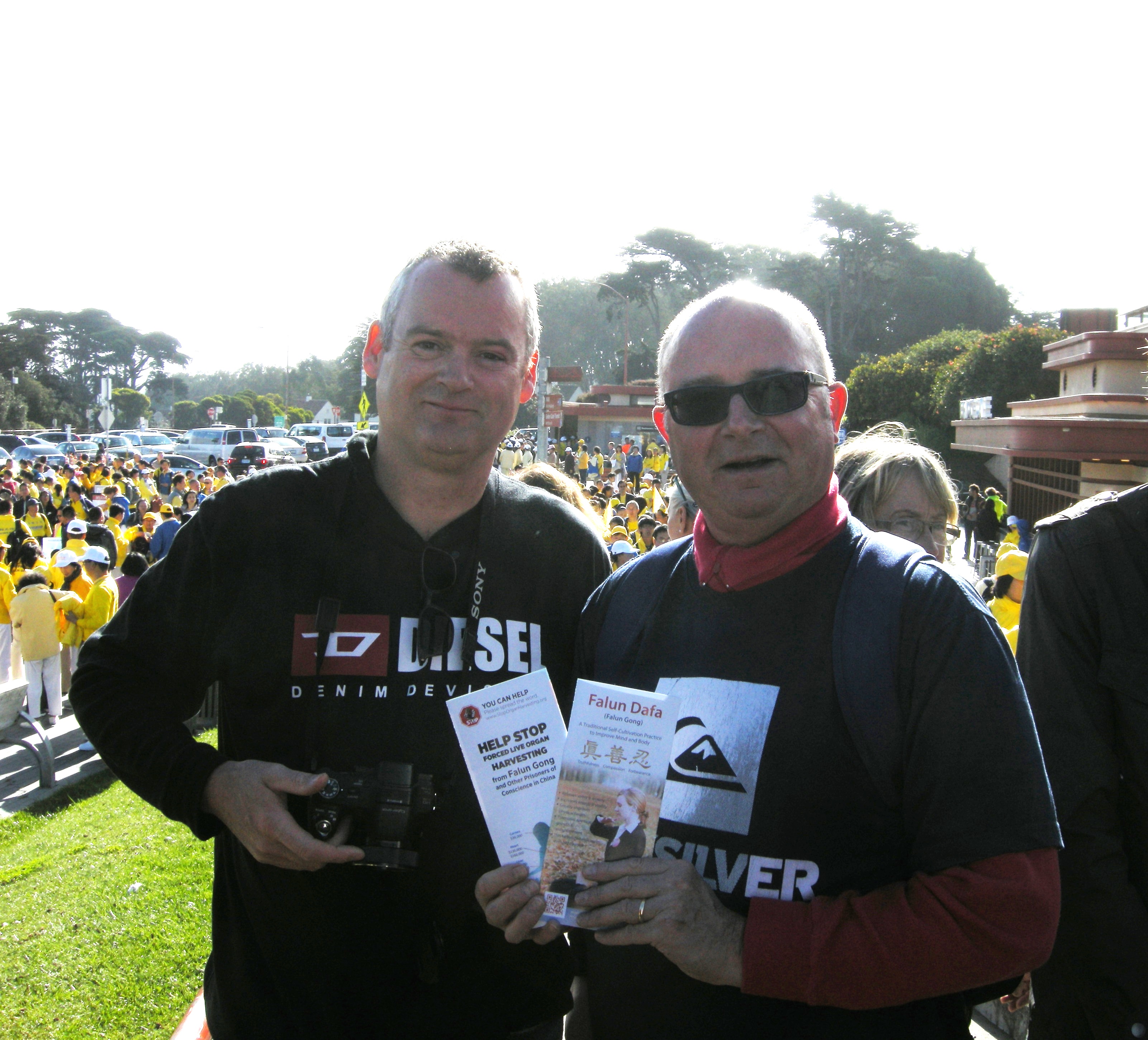 居住在南加州 St. Monica地区的 Esvim 是一名记者,为一家设立于加州主要覆盖政治新闻的网络媒体工作,他和助手Les在金门大桥遇见了法轮功学员游行。Esvim说:“法轮功学员的游行队伍很壮观,有力地表达了要终止迫害的诉求。”他说他知道在有的国家有黑市人体器官交易,“但是象中共这样大规模盗卖法轮功学员人体器官,实在是太恐怖太疯狂。”