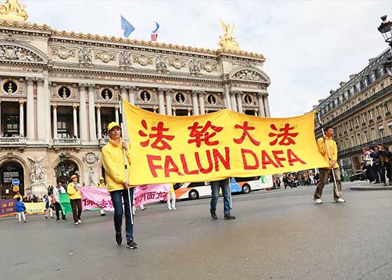 法轮功学员巴黎游行呼吁制止中共迫害(图)